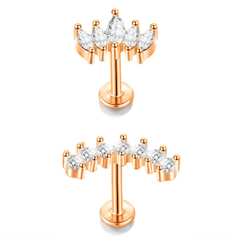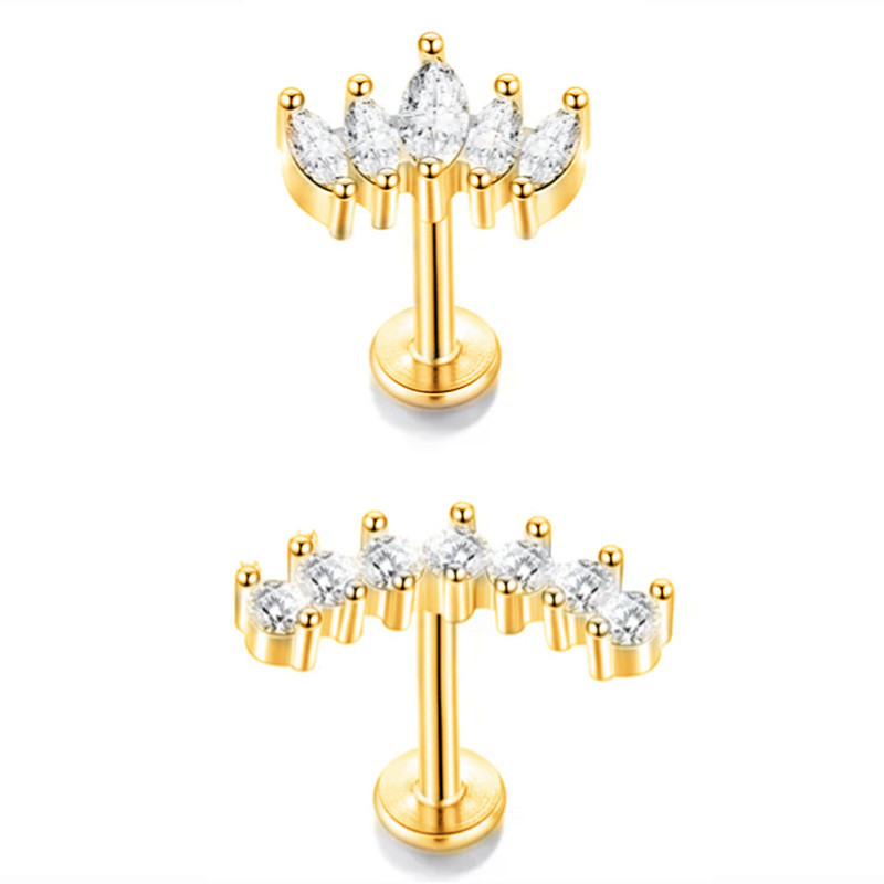 Bijoux de piercing d'oreille en acier inoxydable, Placage, avec zircone cubique, couleurs mélangées Vendu par PC