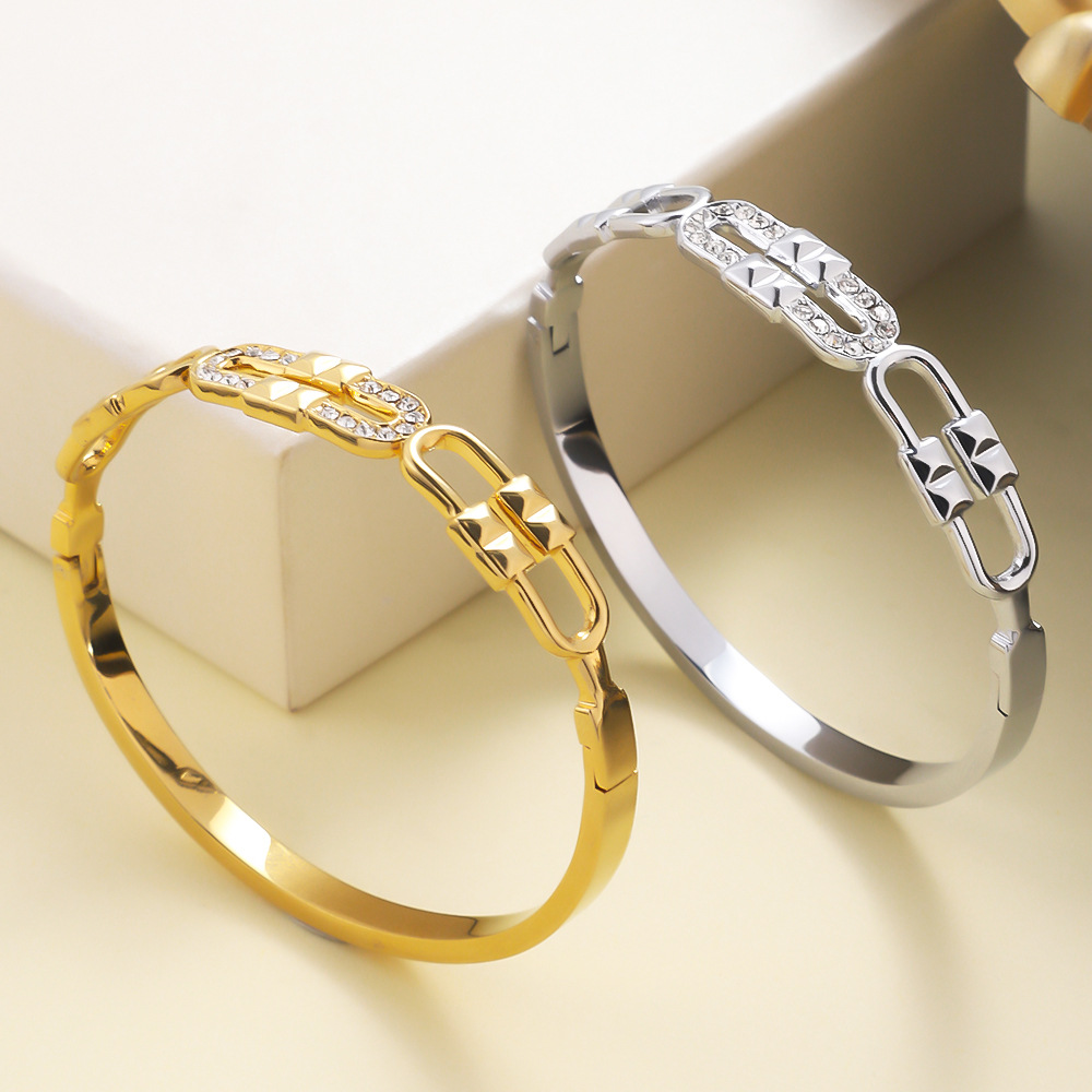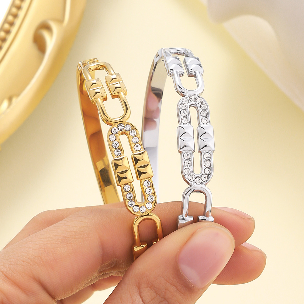 Acier inoxydable 304, Placage, pour femme & avec strass & creux, plus de couleurs à choisir, Vendu par PC