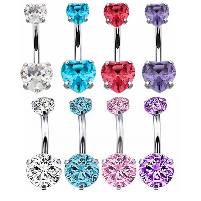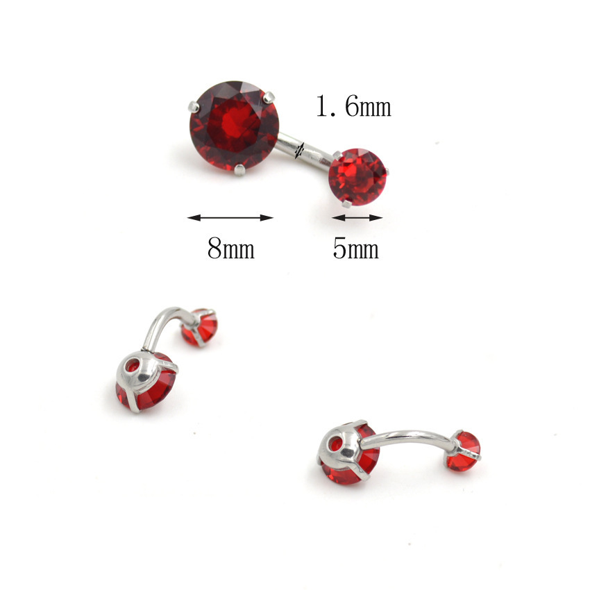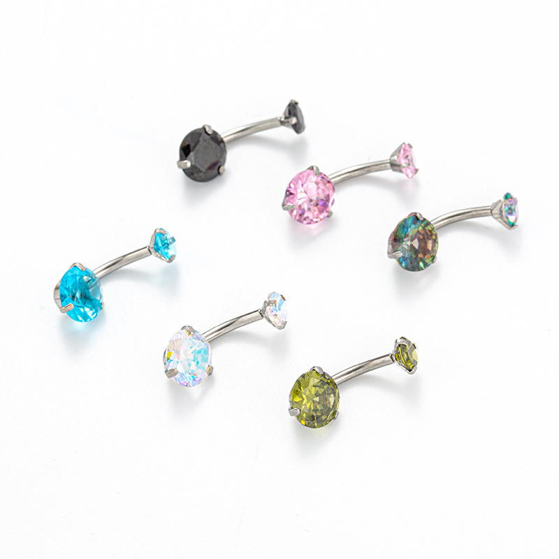 Anneau de ventre en acier inoxydable, acier inoxydable 316L, Rond, avec strass, plus de couleurs à choisir Vendu par lot