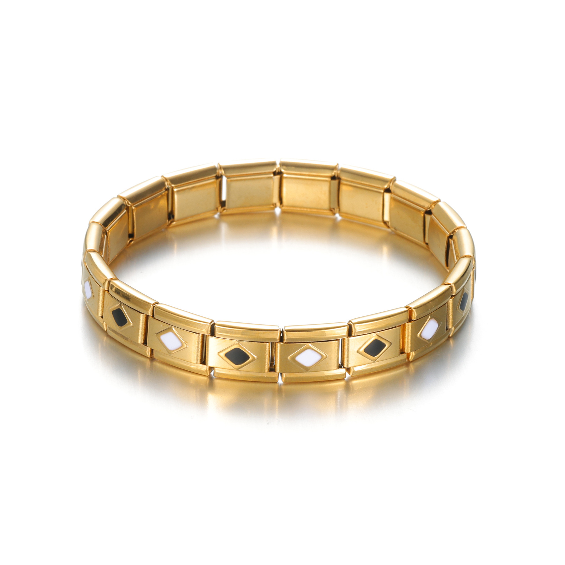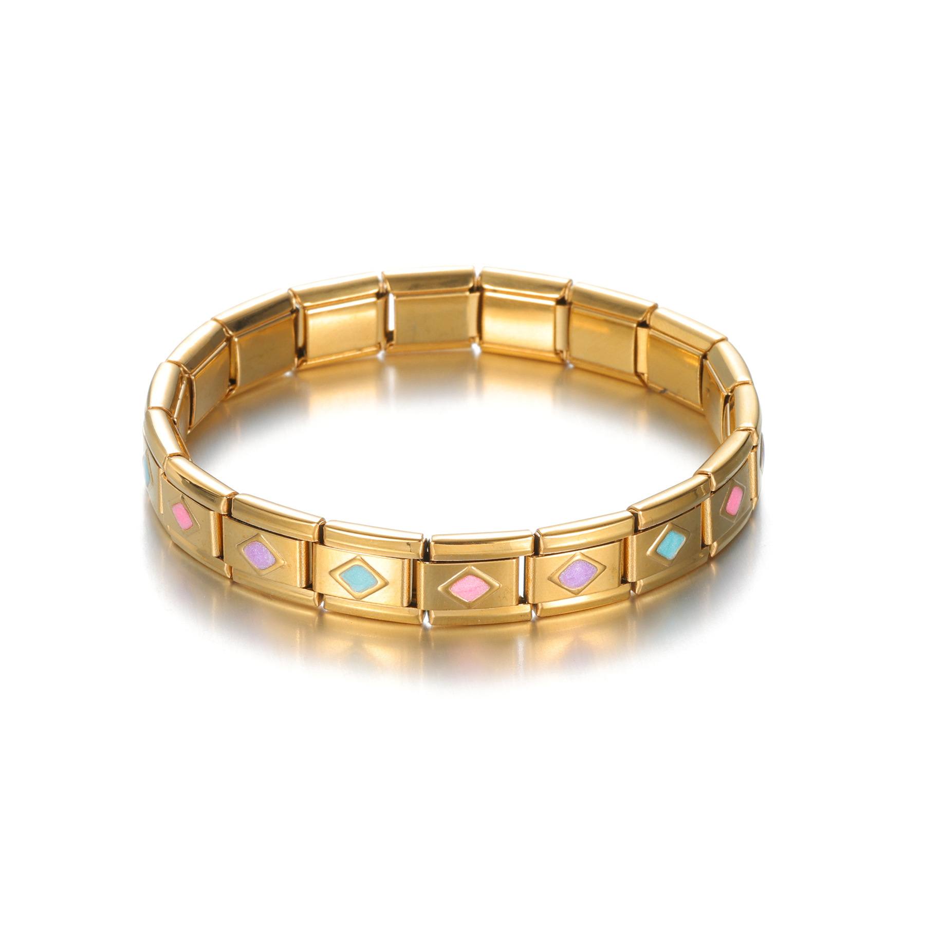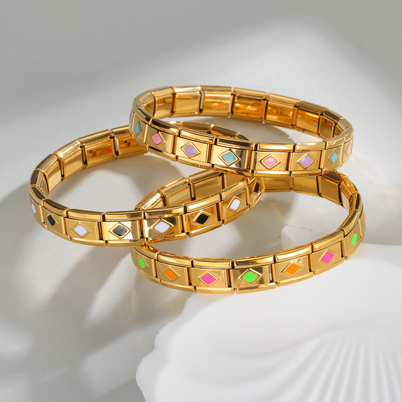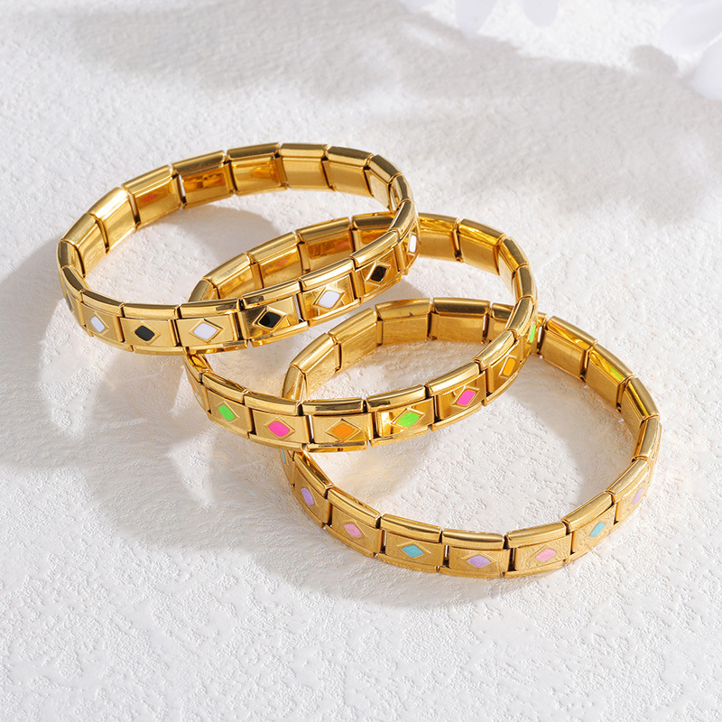 Acier inoxydable Bracelet extensible, Acier inoxydable 304, Placage de couleur d'or, fait à la main & pour femme & émail, plus de couleurs à choisir, Vendu par PC
