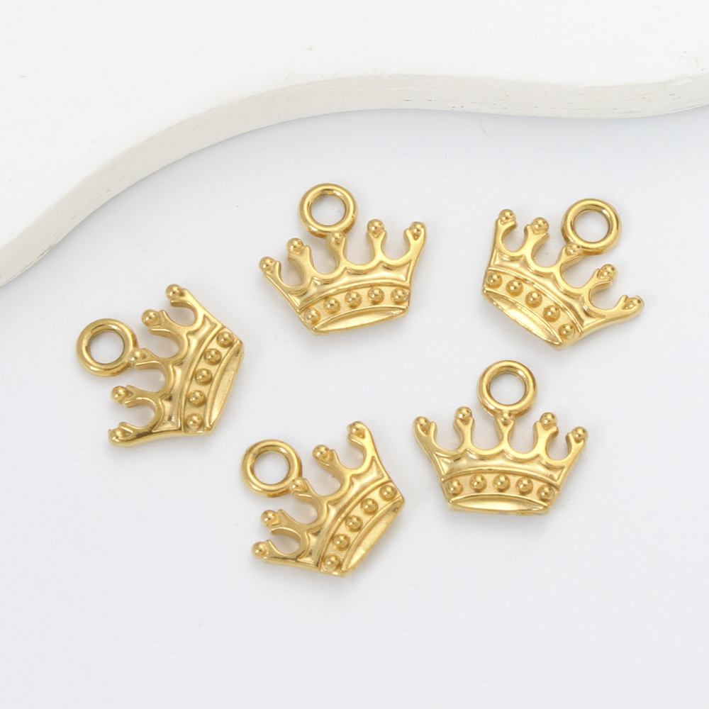 Acier inoxydable Pendentif Couronne, Acier inoxydable 304, Placage de couleur d'or, DIY, doré, 13x14x3mm, Vendu par PC