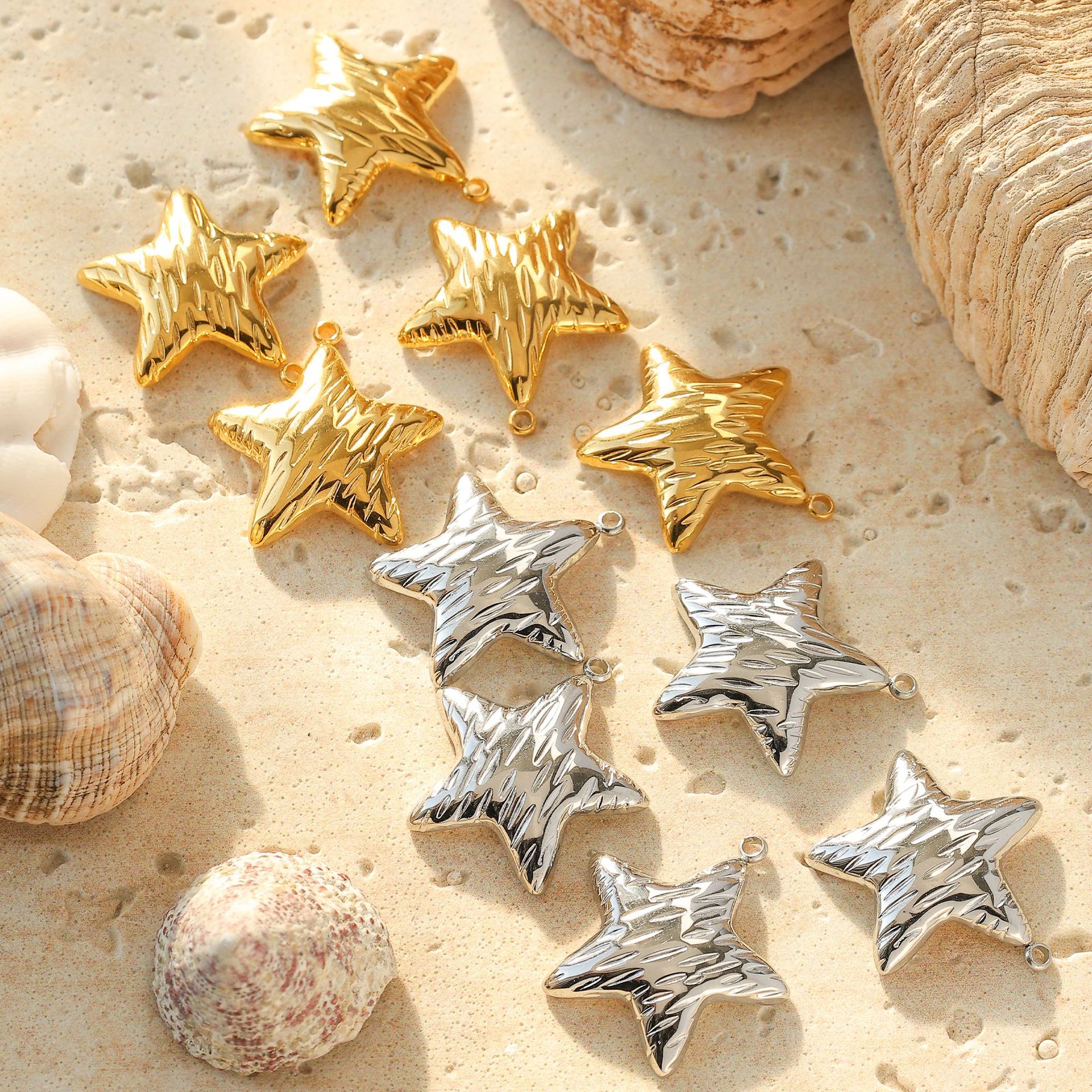 Acier inoxydable Pendentif étoile, Plaqué d'or Environ Vendu par PC