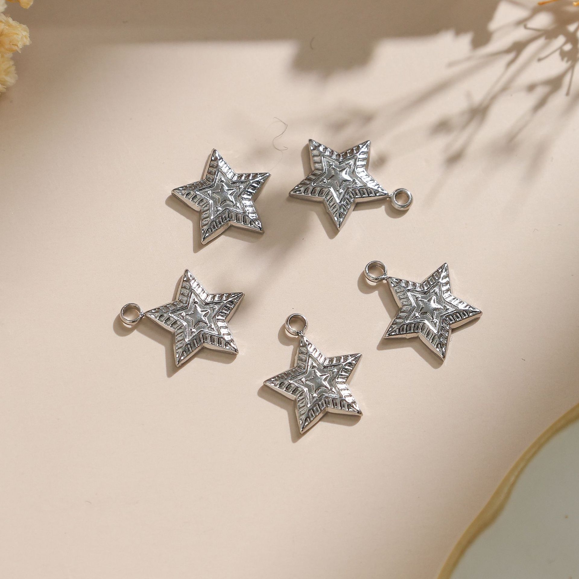 Acier inoxydable Pendentif étoile, Acier inoxydable 304, Placage ionique sous vide, DIY, plus de couleurs à choisir, 13x15mm, 10PC/sac, Vendu par sac