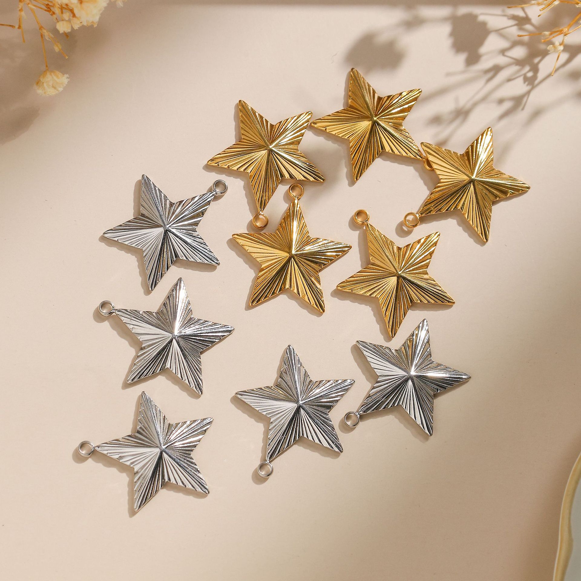 Acier inoxydable Pendentif étoile, Acier inoxydable 304, Placage ionique sous vide, DIY, plus de couleurs à choisir, 21x24mm, 10PC/sac, Vendu par sac