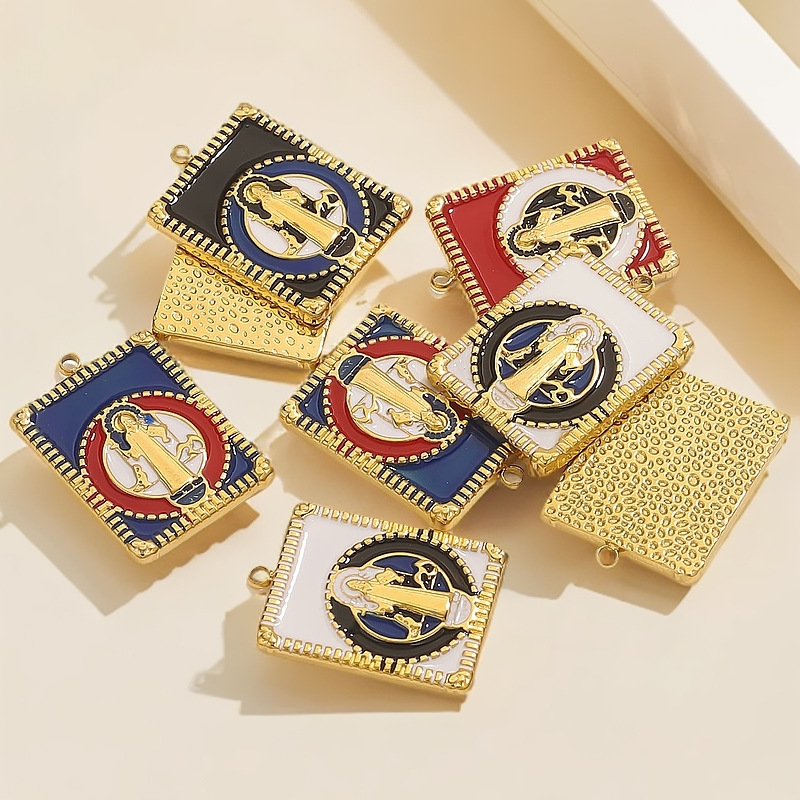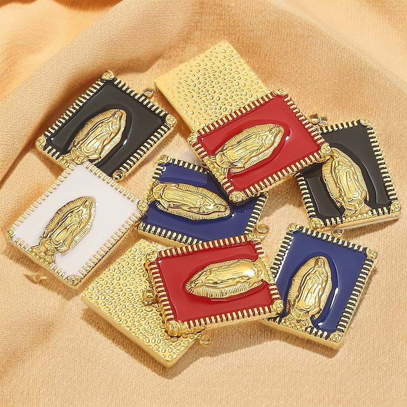 Acier inoxydable Saint pendentif, Acier inoxydable 304, cadre, Placage de couleur d'or, DIY & modèles différents pour le choix & émail, plus de couleurs à choisir, 5PC/sac, Vendu par sac