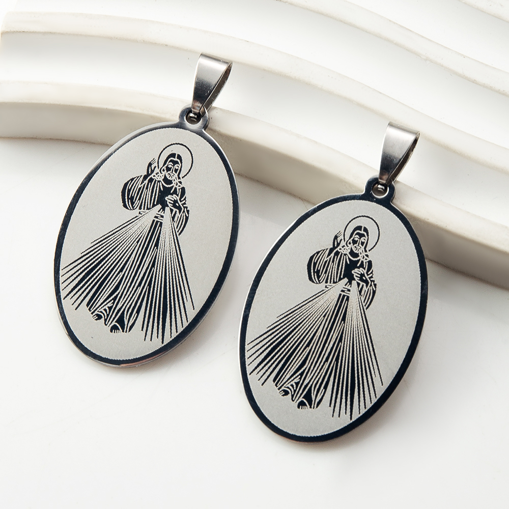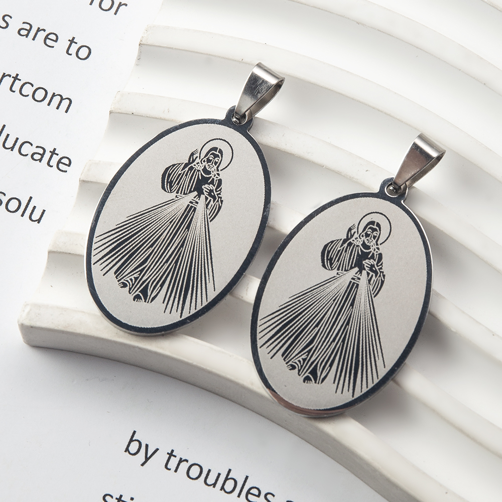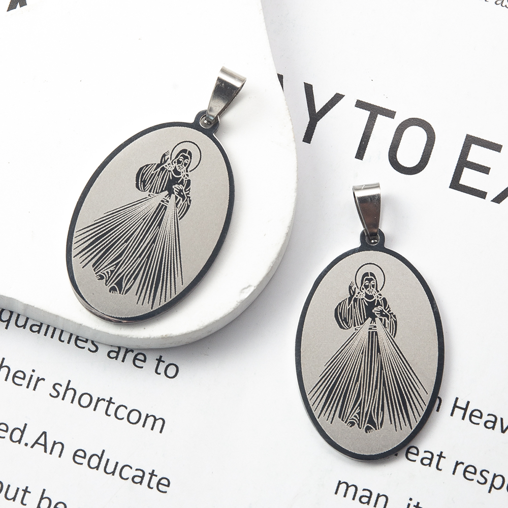 Acier inoxydable Saint pendentif, ovale plat, goutté d'époxy, bijoux Christian & modèles différents pour le choix Environ Vendu par PC