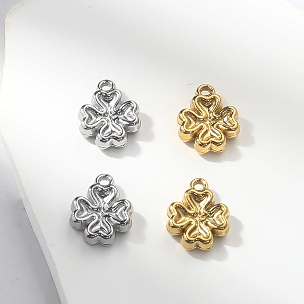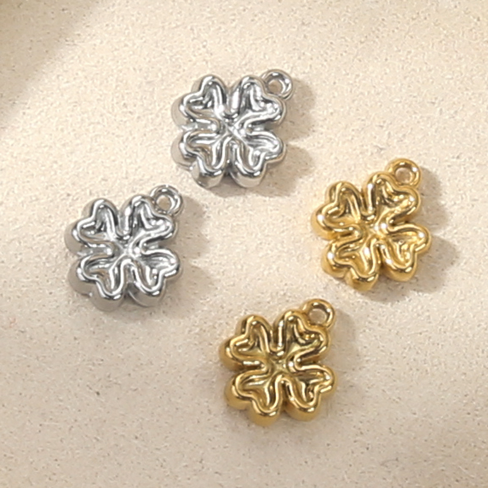 Acier inoxydable Trèfle Pendentif, Trèfle à quatre feuilles, couleur originale Environ 1mm Vendu par sac