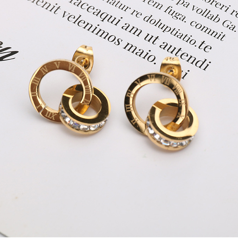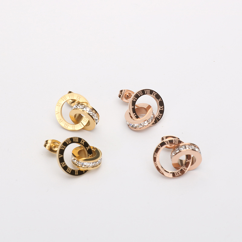 Acier titane Boucle d'oreille goutte, beignet, Placage, avec chiffre romain & pour femme & avec strass, plus de couleurs à choisir, 20mm, Vendu par paire