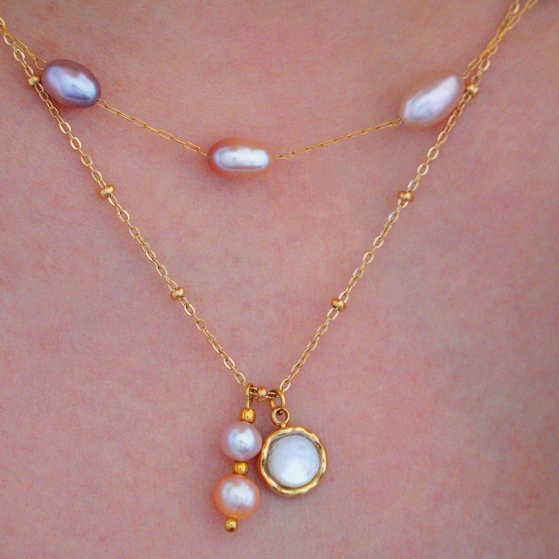 Bijoux de perle d'eau douce naturelle, perle d'eau douce cultivée, 2 pièces & pour femme 43CM 18.5CM, Vendu par fixé