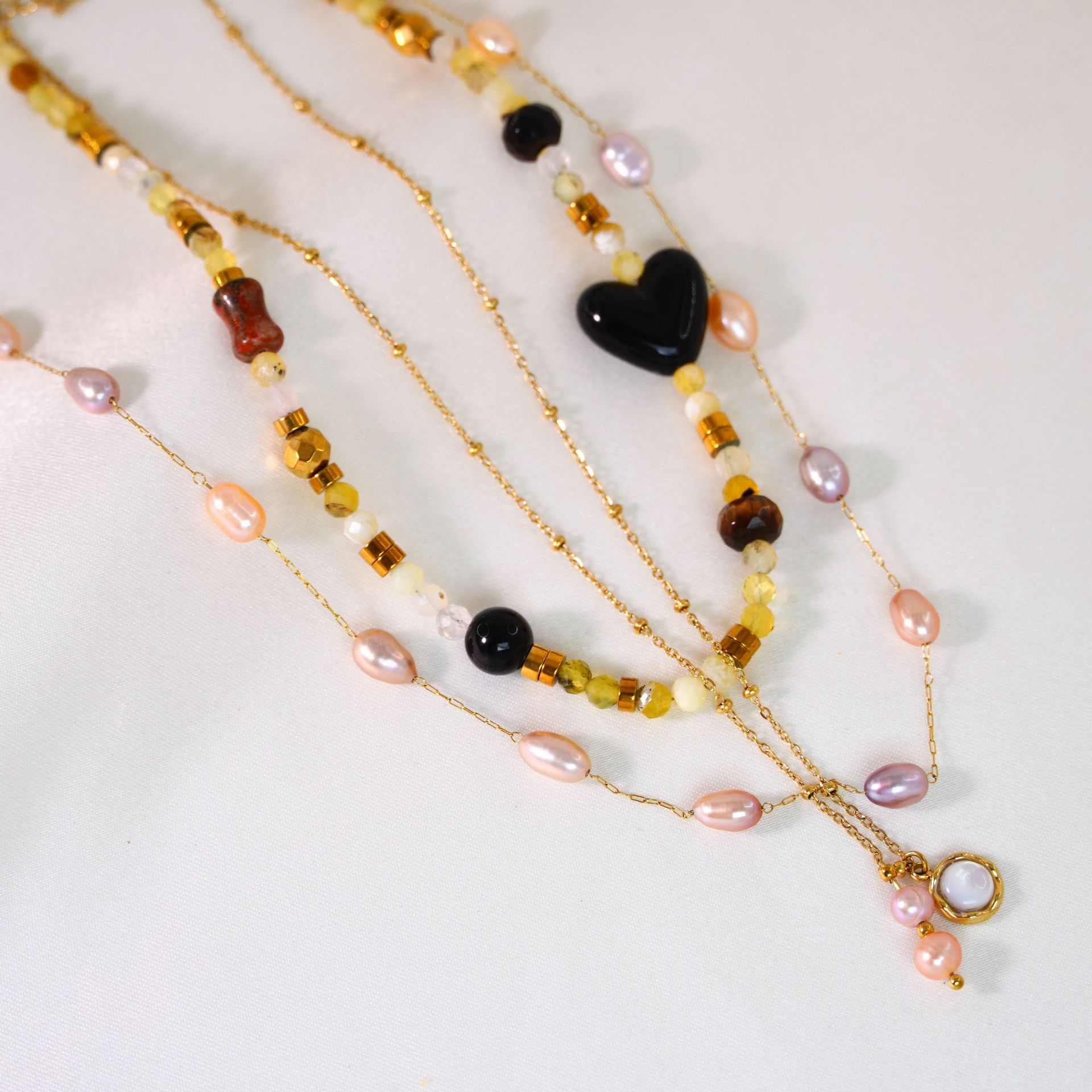 Acier titane Collier et bracelet, avec Jade & perle d'eau douce cultivée, Placage de couleur d'or, styles différents pour le choix & pour femme, Vendu par PC