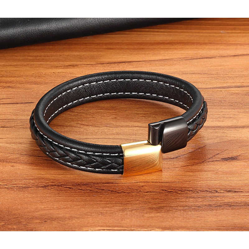 bracelet de cordon en PU , alliage de zinc, avec cuir PU & Acier inoxydable 304, fait à la main, pour homme, noire, Vendu par PC