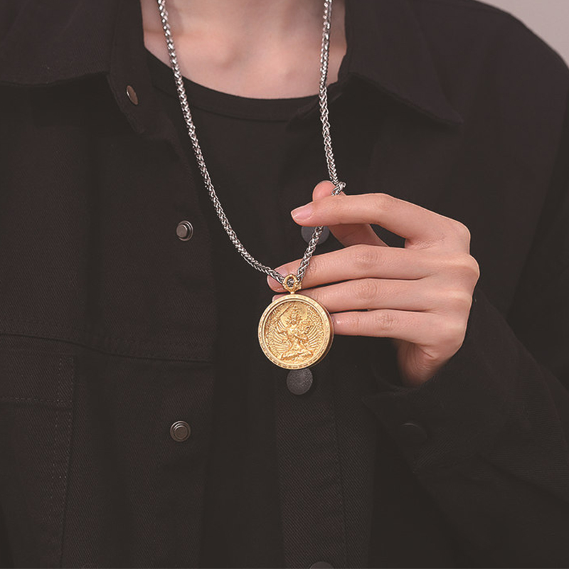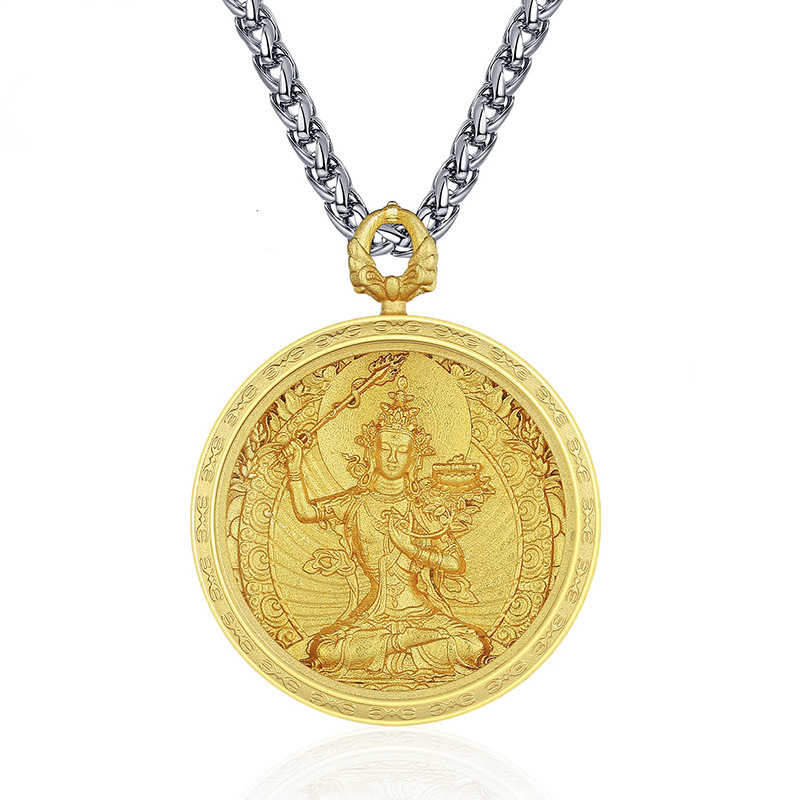 Acier titane collier, Plat rond, Placage, bijoux bouddhiste & unisexe & styles différents pour le choix, Longueur:Environ 27.6 pouce, Vendu par PC