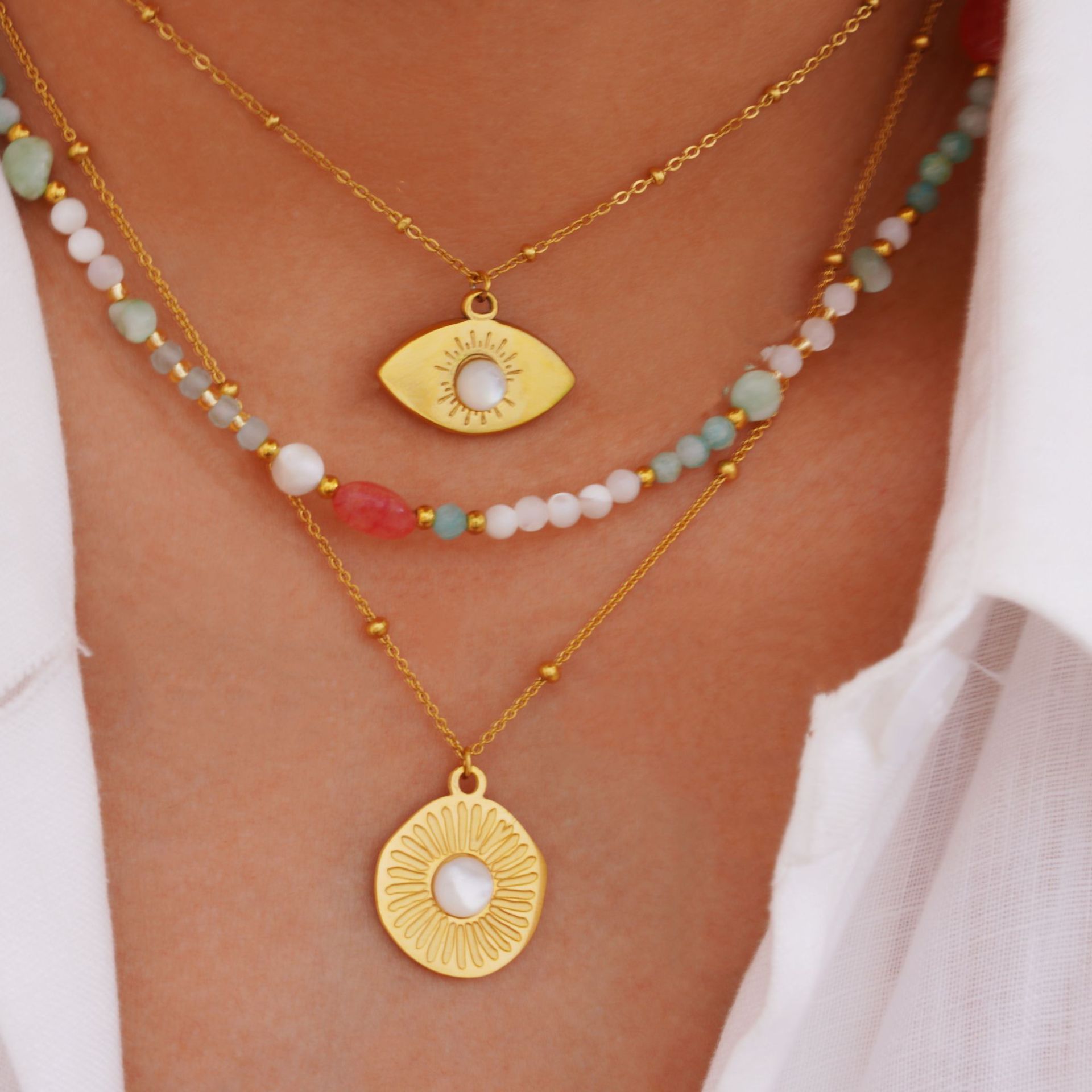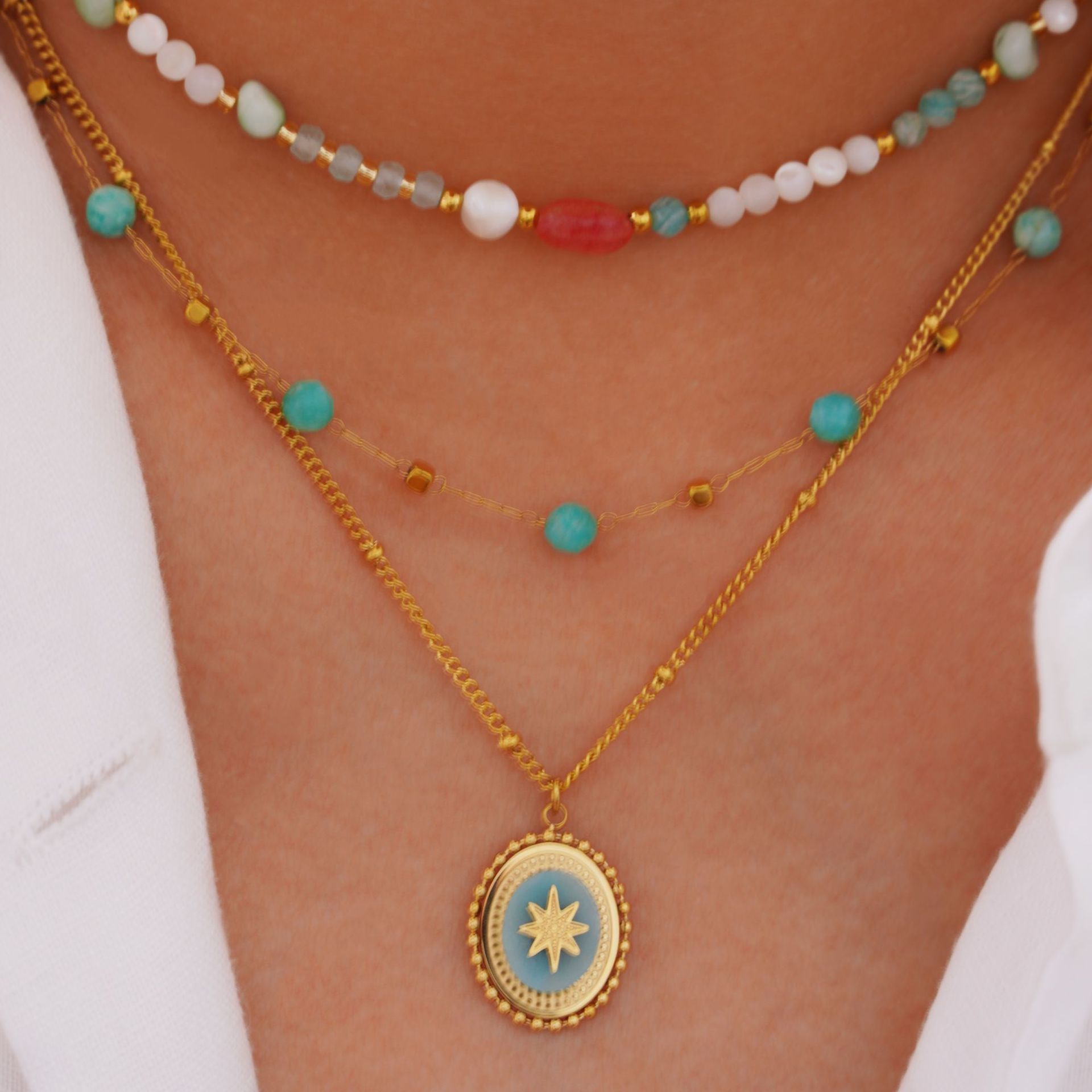 Acier titane collier, avec Amazonite & coquille blanche, Placage de couleur d'or, styles différents pour le choix & pour femme, Vendu par PC