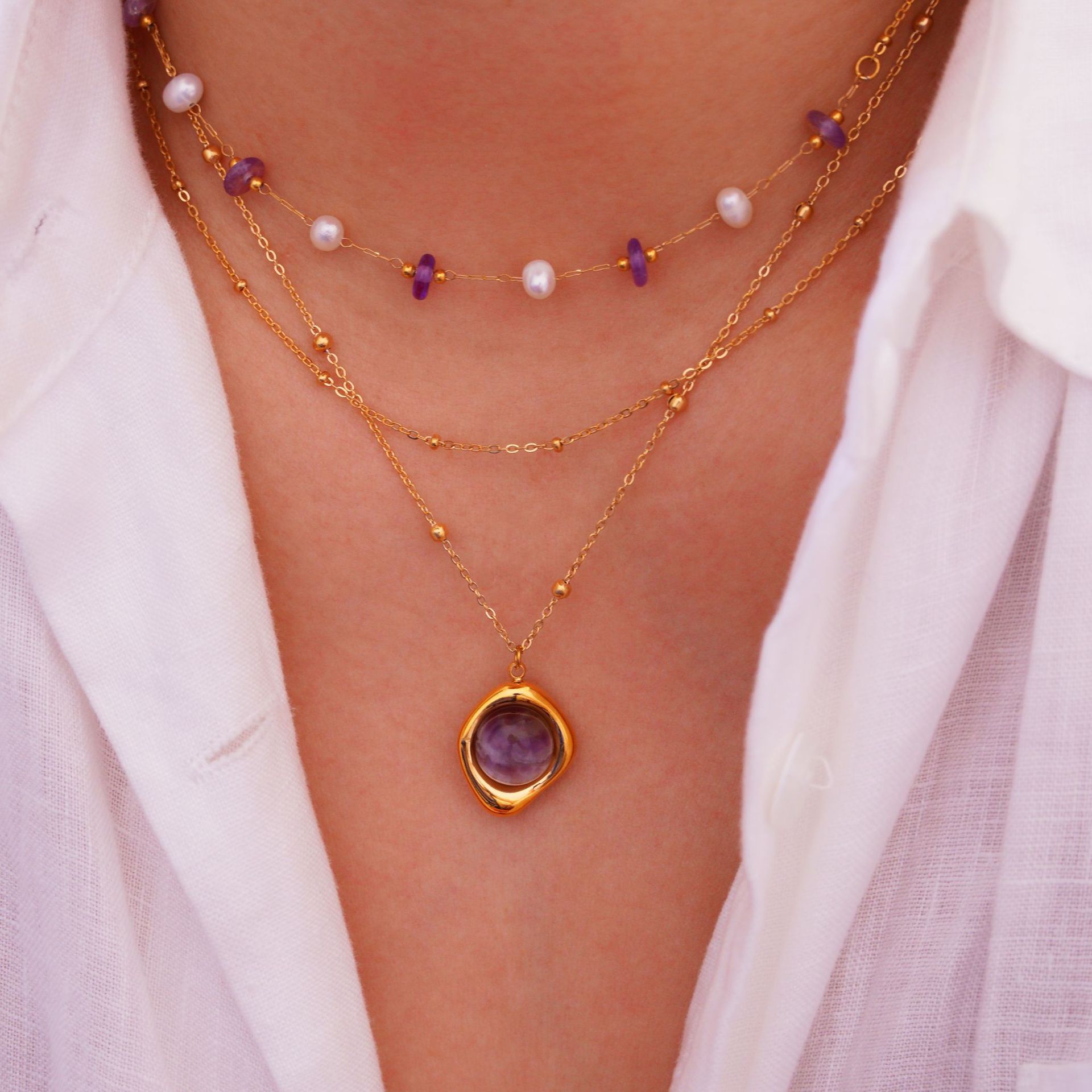 Acier titane collier, avec pierre gemme, Placage de couleur d'or, différents matériaux pour le choix & pour femme, Longueur:Environ 16-18 pouce, Vendu par PC