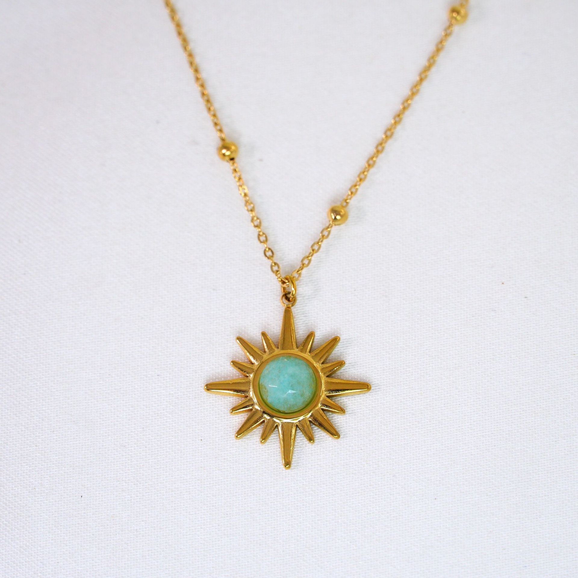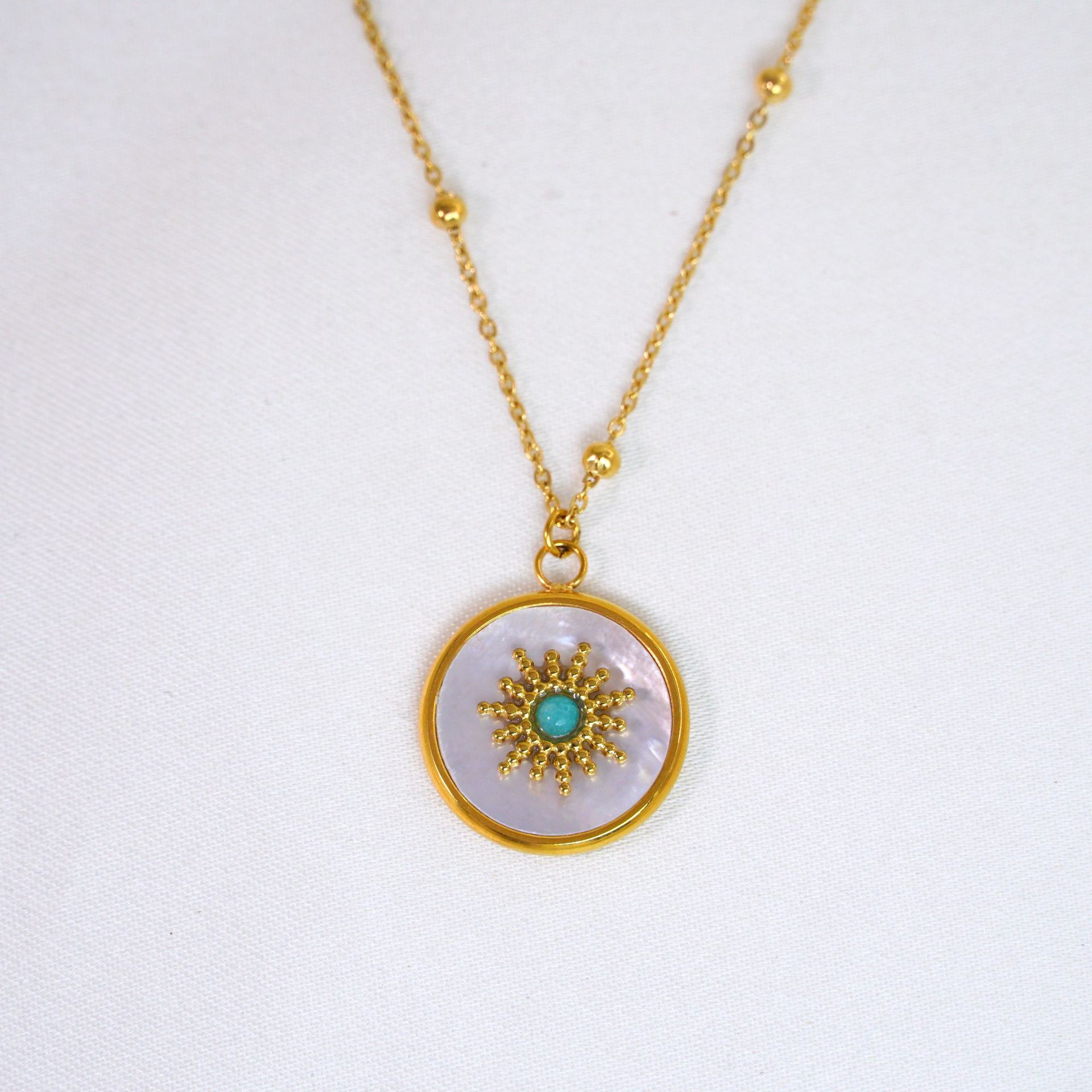 Acier titane collier, avec Amazonite & coquille, Placage de couleur d'or, styles différents pour le choix & pour femme, Longueur:Environ 16-18 pouce, Vendu par PC