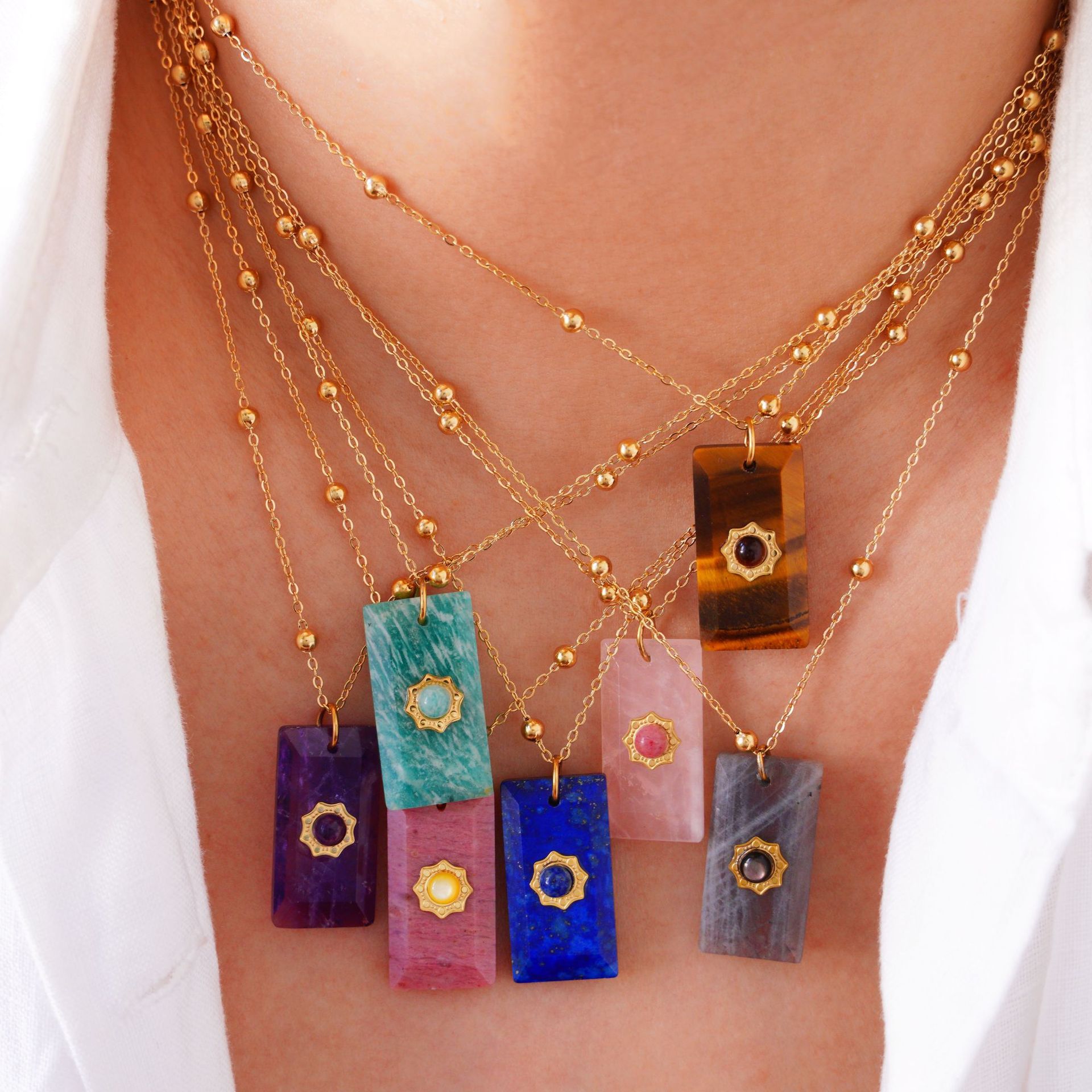Acier titane collier, avec pierre gemme, Placage de couleur d'or, styles différents pour le choix & pour femme, Longueur:Environ 16-18 pouce, Vendu par PC