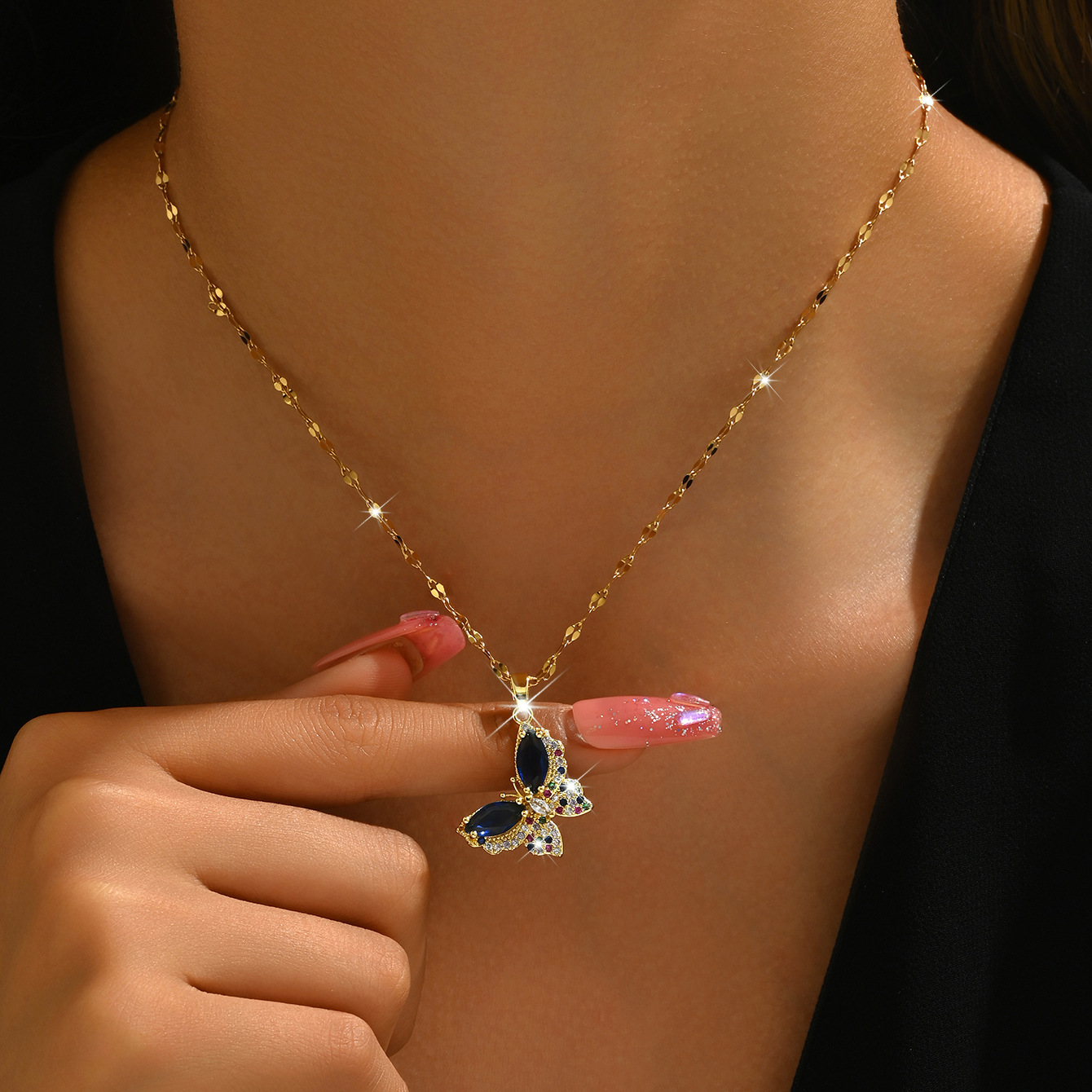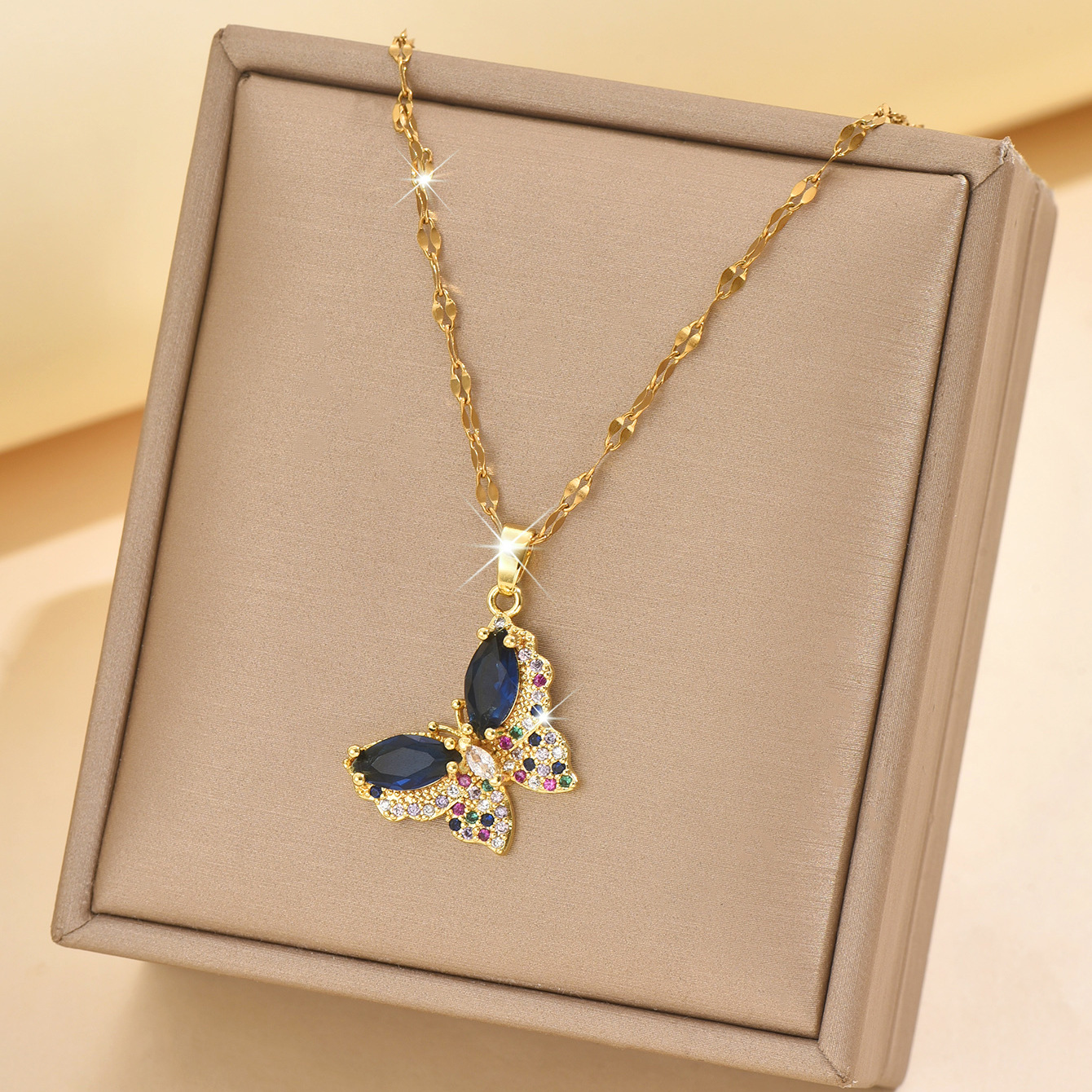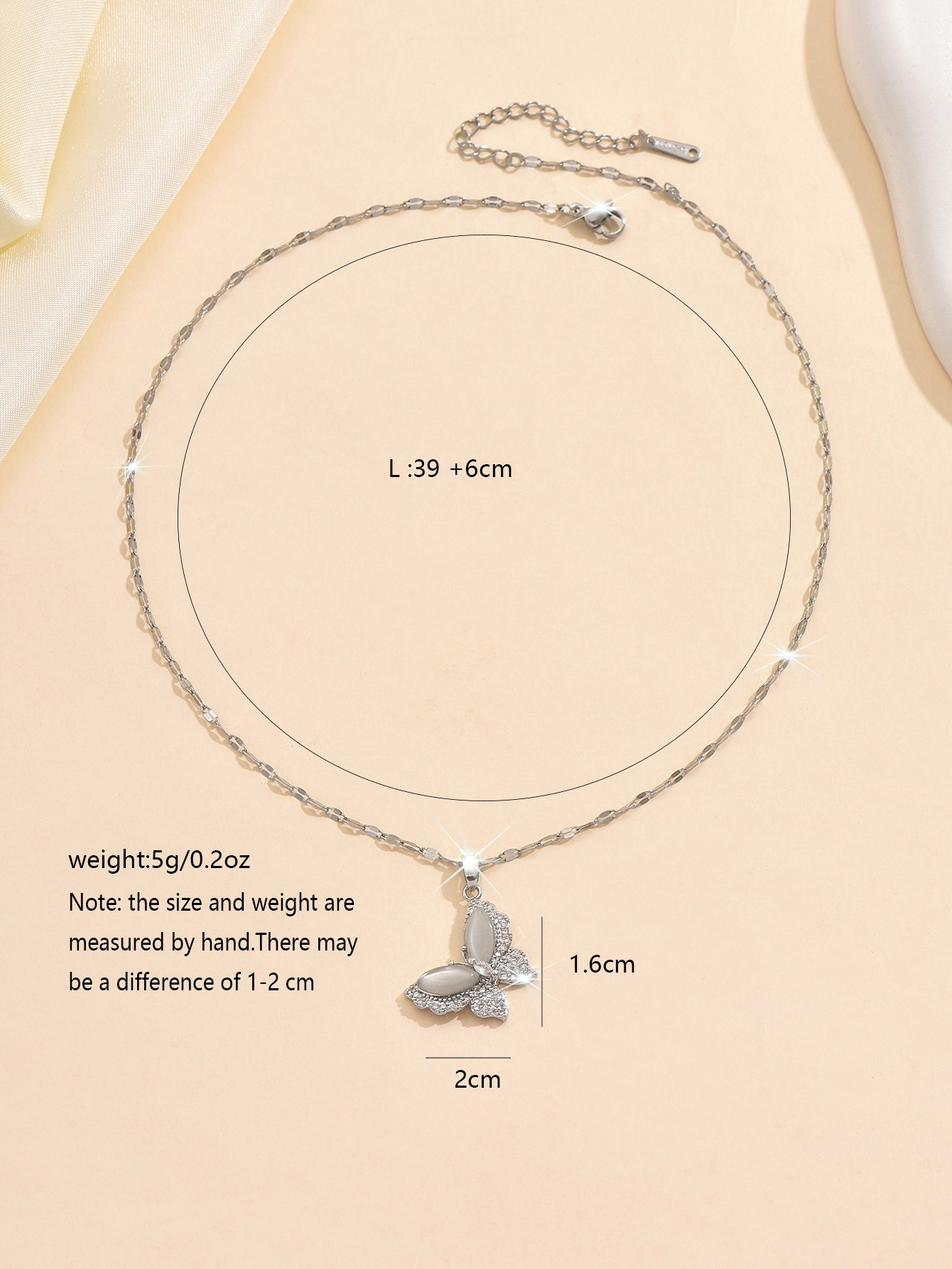 Acier titane collier, avec Oeil de chat & laiton, avec 2.4inch chaînes de rallonge, papillon, Placage, pavé de micro zircon & pour femme, plus de couleurs à choisir, Longueur:Environ 15.4 pouce, Vendu par PC