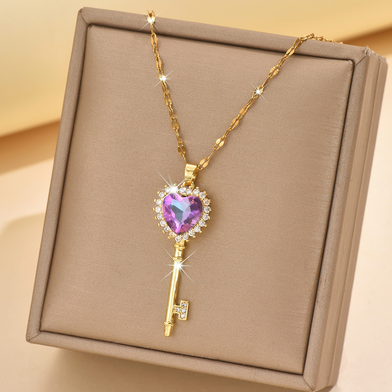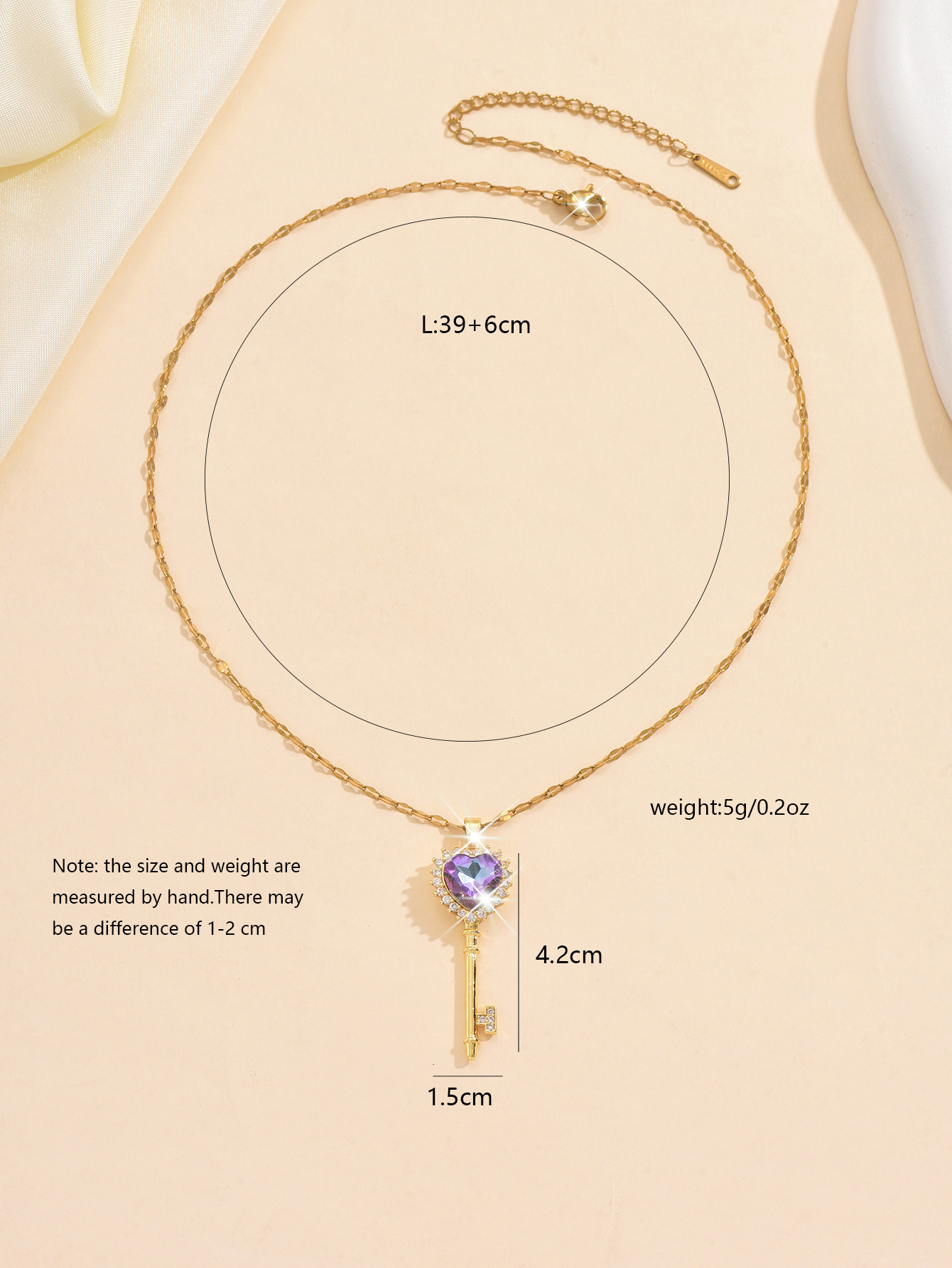 Acier titane collier, avec 2.4inch chaînes de rallonge, clé, Placage, styles différents pour le choix & pour femme & avec strass, Longueur:Environ 15.4 pouce, Vendu par PC