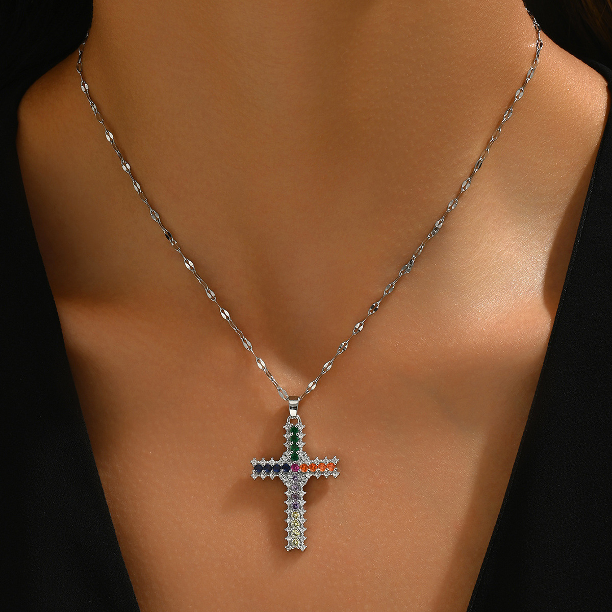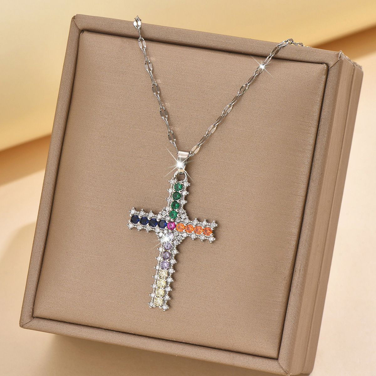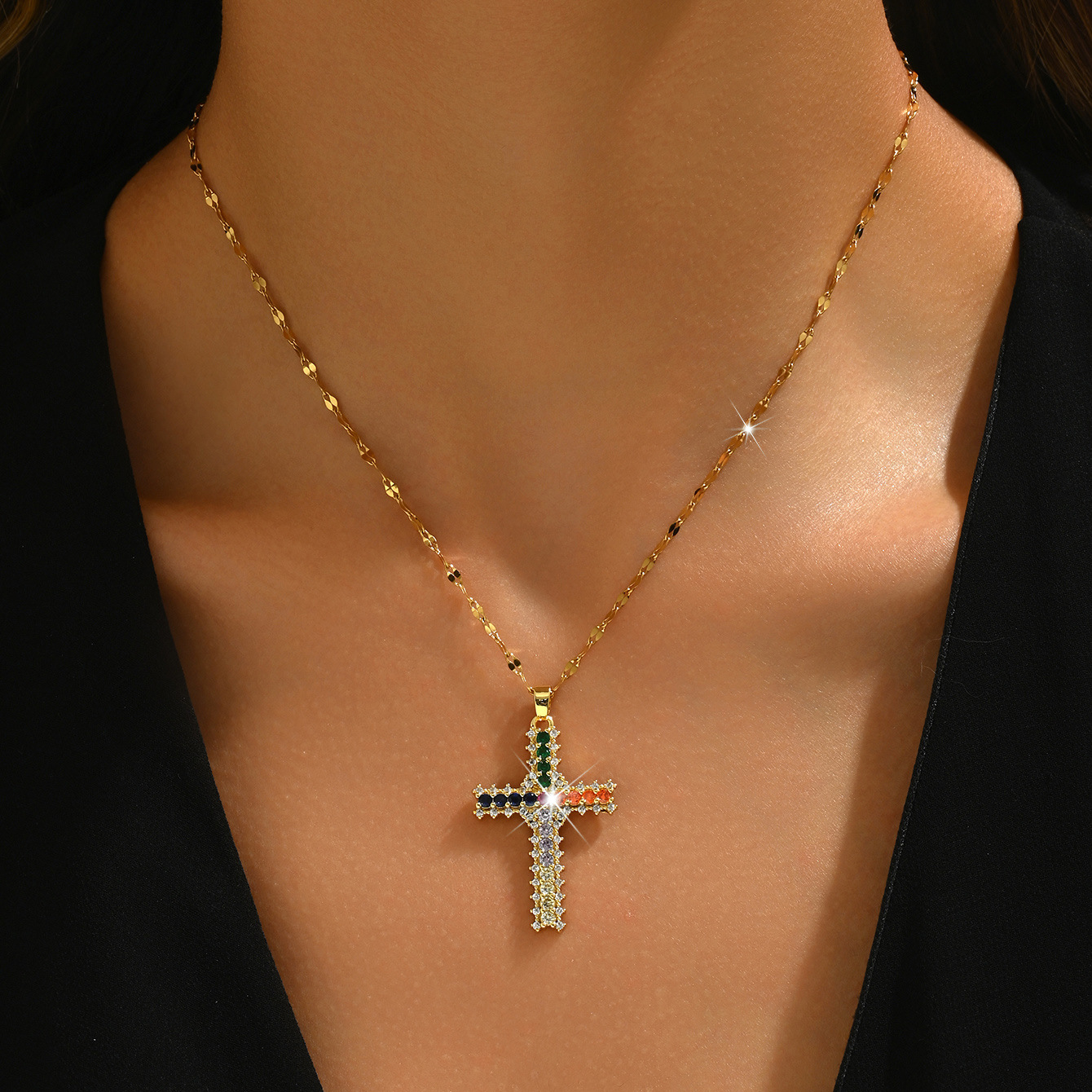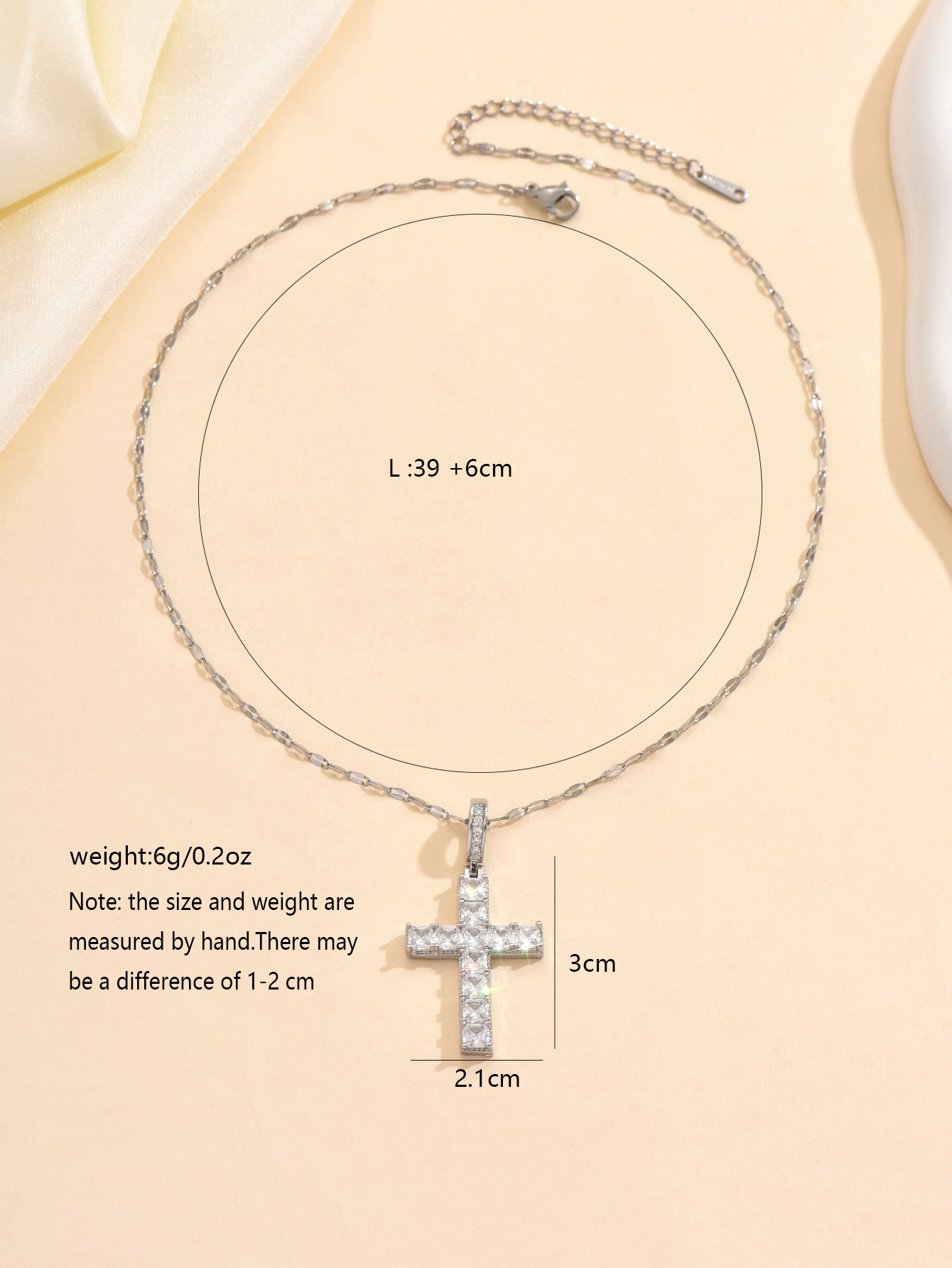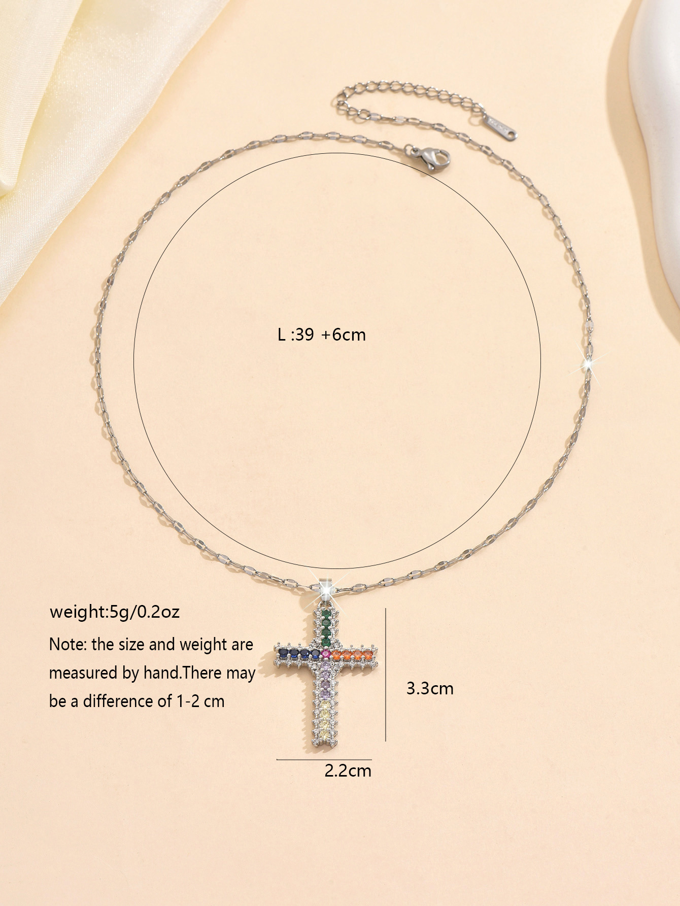 Acier titane collier, avec 2.4inch chaînes de rallonge, croix, Placage, pavé de micro zircon & pour femme, plus de couleurs à choisir, Longueur:Environ 15.4 pouce, Vendu par PC