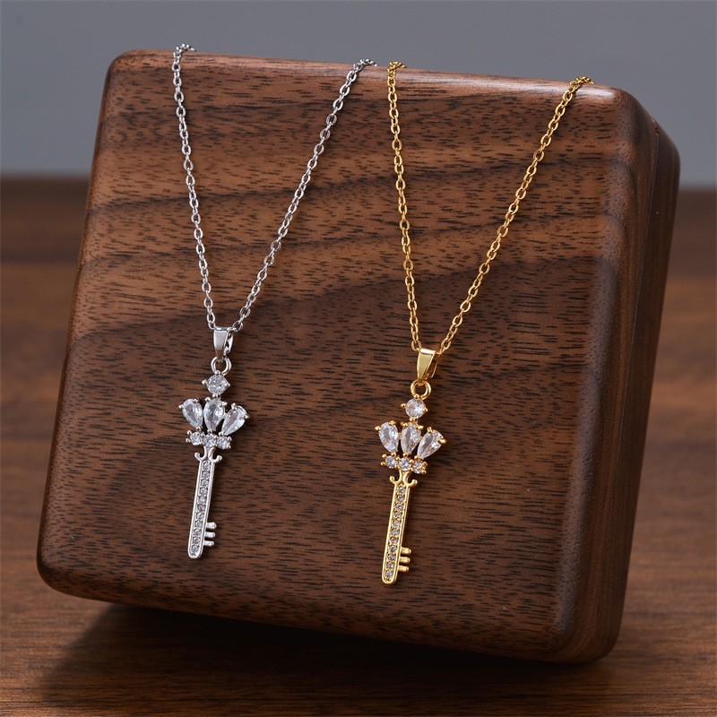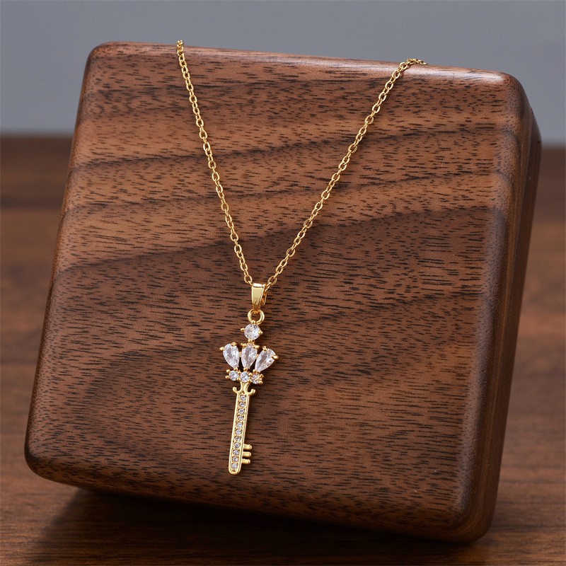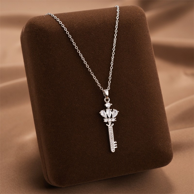 Acier titane collier, avec zircon cubique, Placage, bijoux de mode & pour femme, plus de couleurs à choisir, Vendu par PC