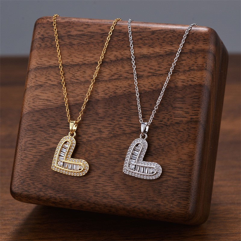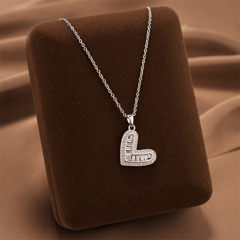 Collier de bijoux de titane, Acier titane, coeur, Placage, chaîne ovale & avec zircone cubique, plus de couleurs à choisir Environ 16 pouce, Vendu par brin