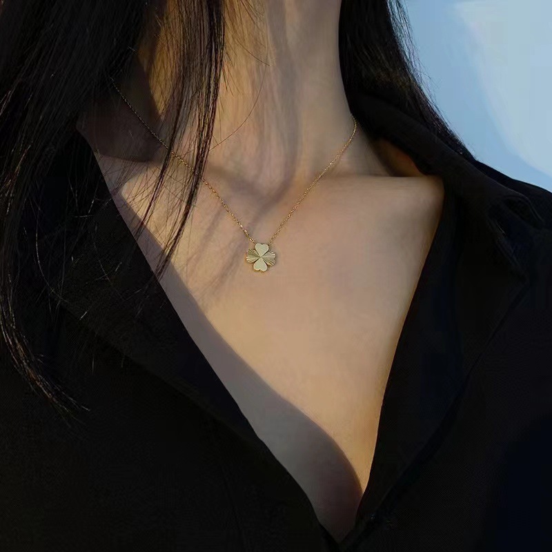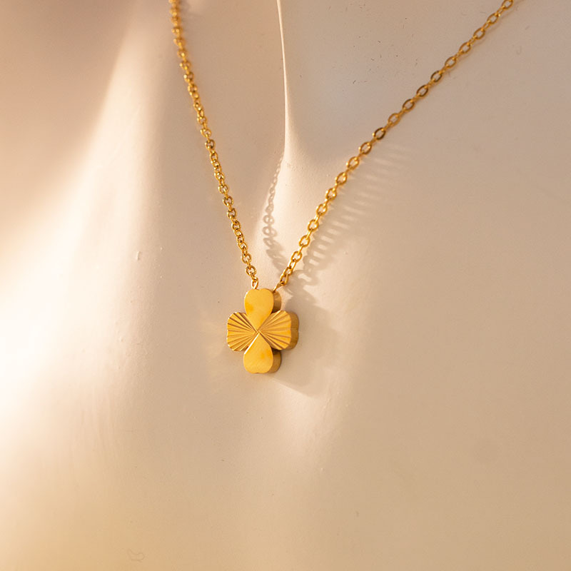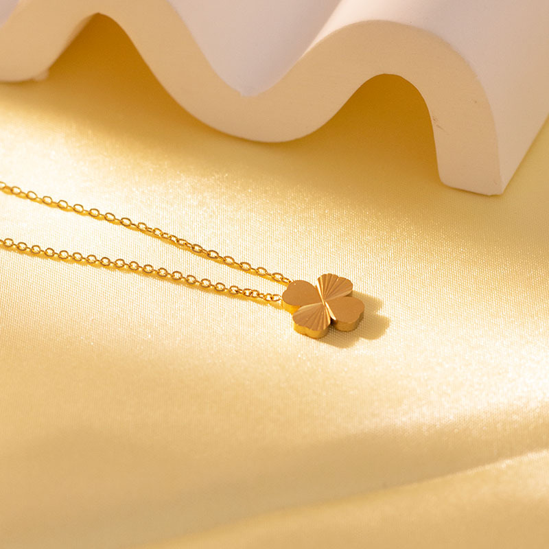 Acier titane collier, Trèfle à quatre feuilles, Placage de couleur d'or, chaîne ovale & pour femme, Longueur:Environ 16-20 pouce, Vendu par PC