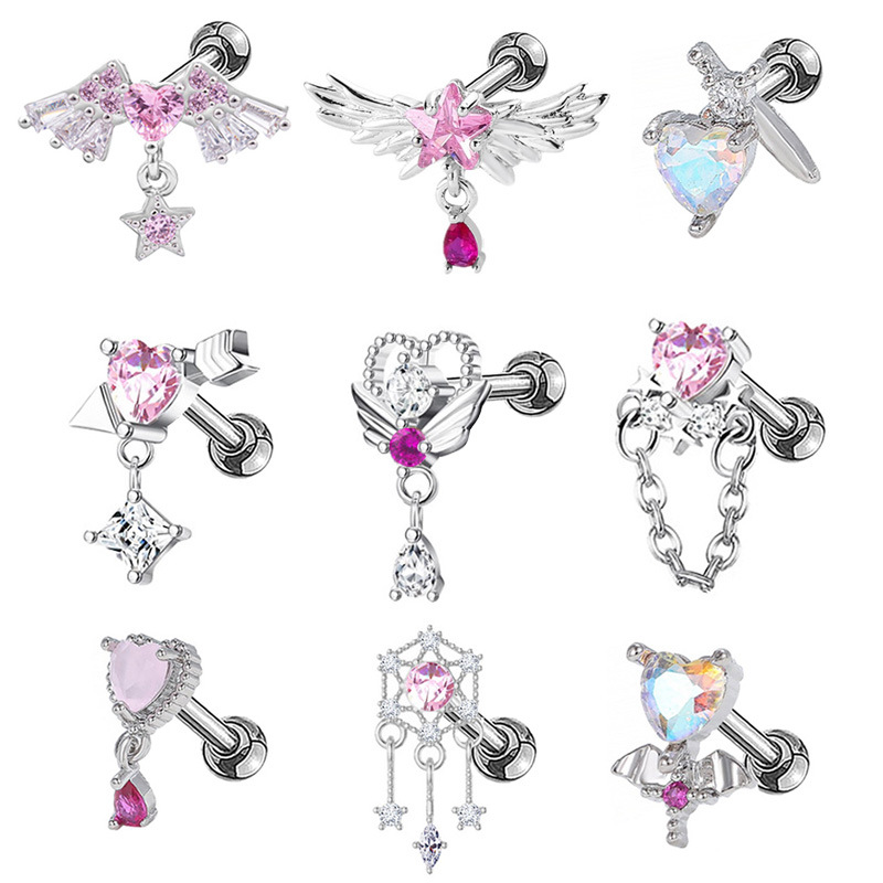 Acier titane piercing oreille, Placage, unisexe & styles différents pour le choix & pavé de micro zircon, Vendu par PC