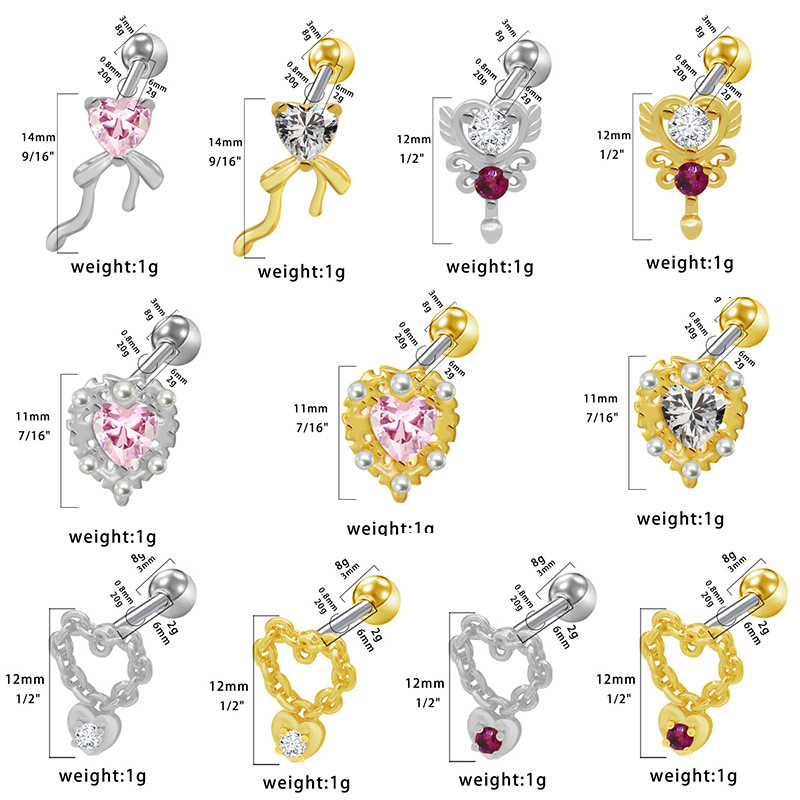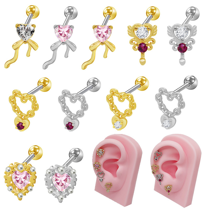 Acier titane piercing oreille, coeur, Placage, unisexe & styles différents pour le choix & pavé de micro zircon, Vendu par PC