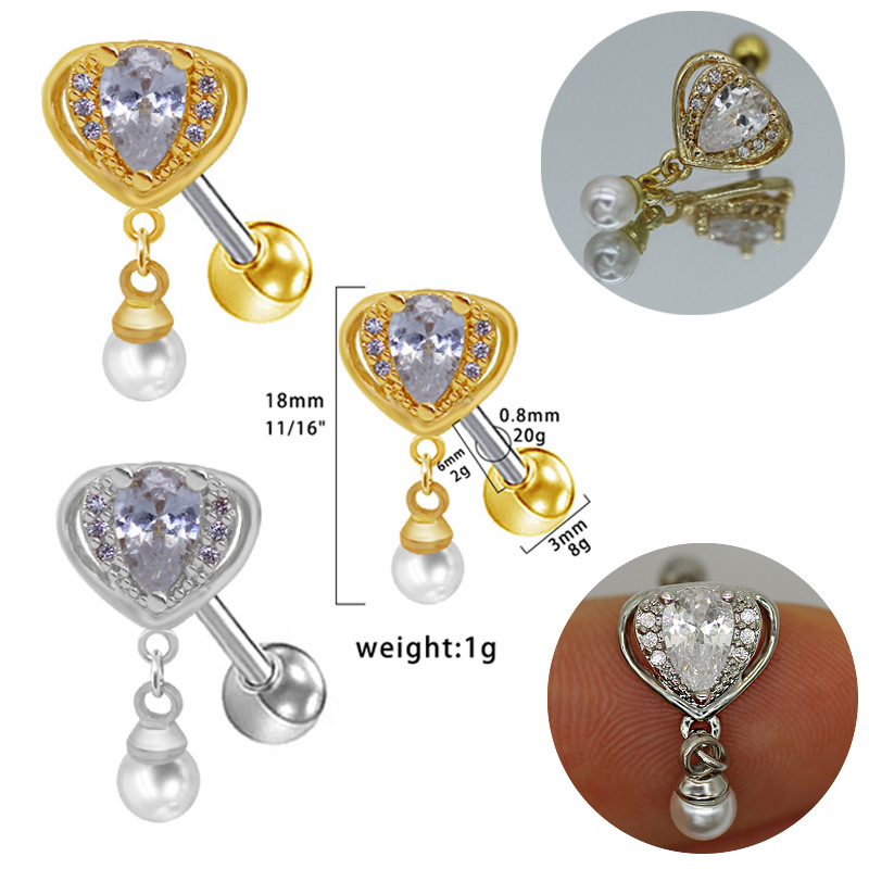 Bijoux de piercing d'oreille en acier inoxydable, Placage, avec zircone cubique, couleurs mélangées Vendu par PC
