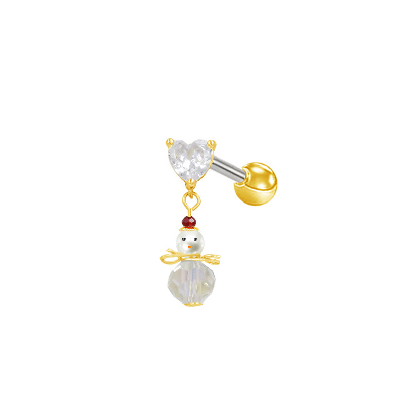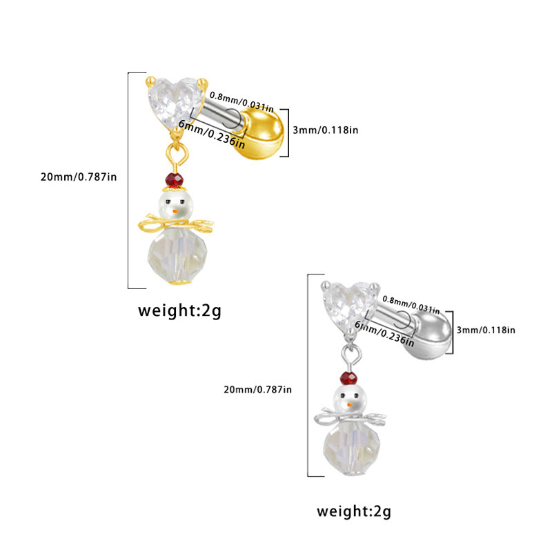 Acier titane piercing oreille, bonhomme de neige, Placage, Conception de Noël & unisexe & pavé de micro zircon, plus de couleurs à choisir, 10PC/lot, Vendu par lot