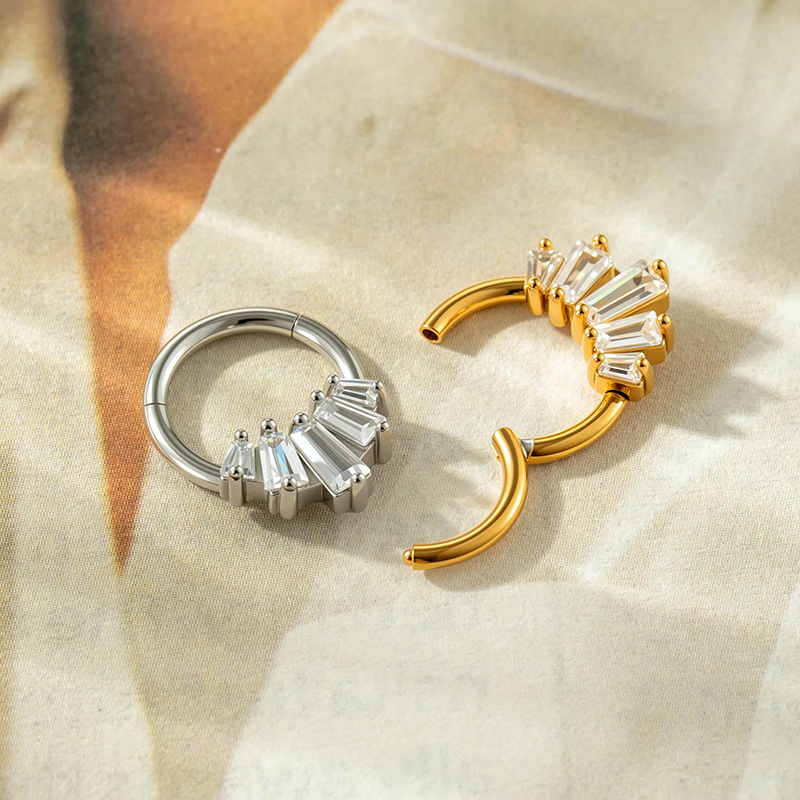 Acier titane piercing oreille, Placage de couleur d'or, bijoux de mode & pavé de micro zircon, plus de couleurs à choisir, Vendu par PC