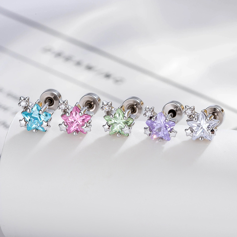 Bijoux de piercing d'oreille en acier inoxydable, Placage, avec zircone cubique, couleurs mélangées Vendu par PC