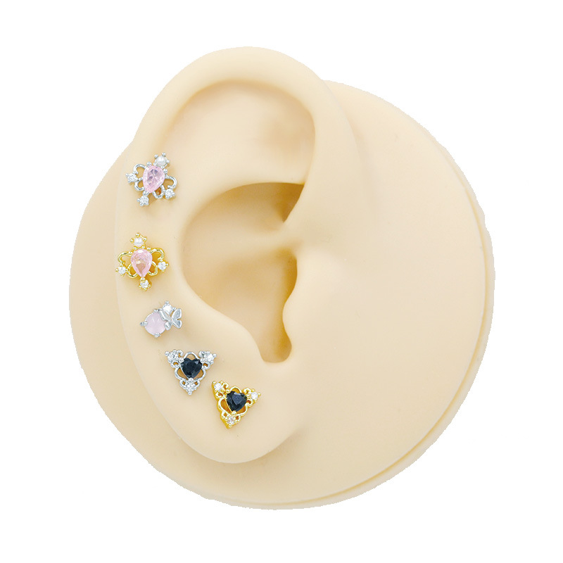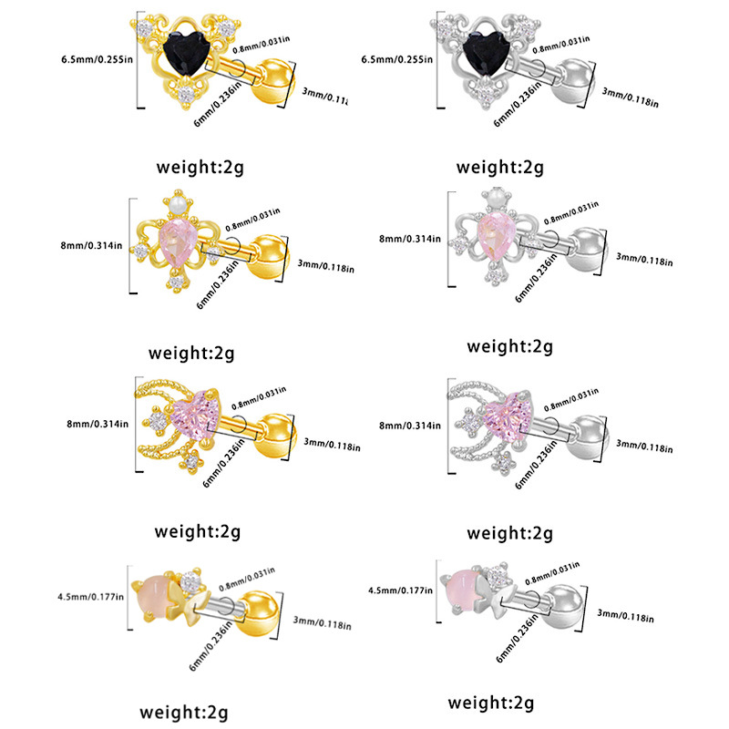 Bijoux de piercing d'oreille en acier inoxydable, Placage, avec zircone cubique, couleurs mélangées Vendu par PC
