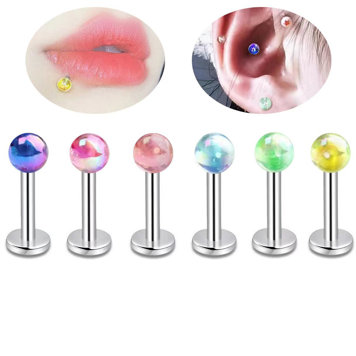 Acrylique Goujons perforés pour les lèvres, avec Acier inoxydable 304, Rond, bijoux de mode & unisexe, plus de couleurs à choisir, Vendu par PC