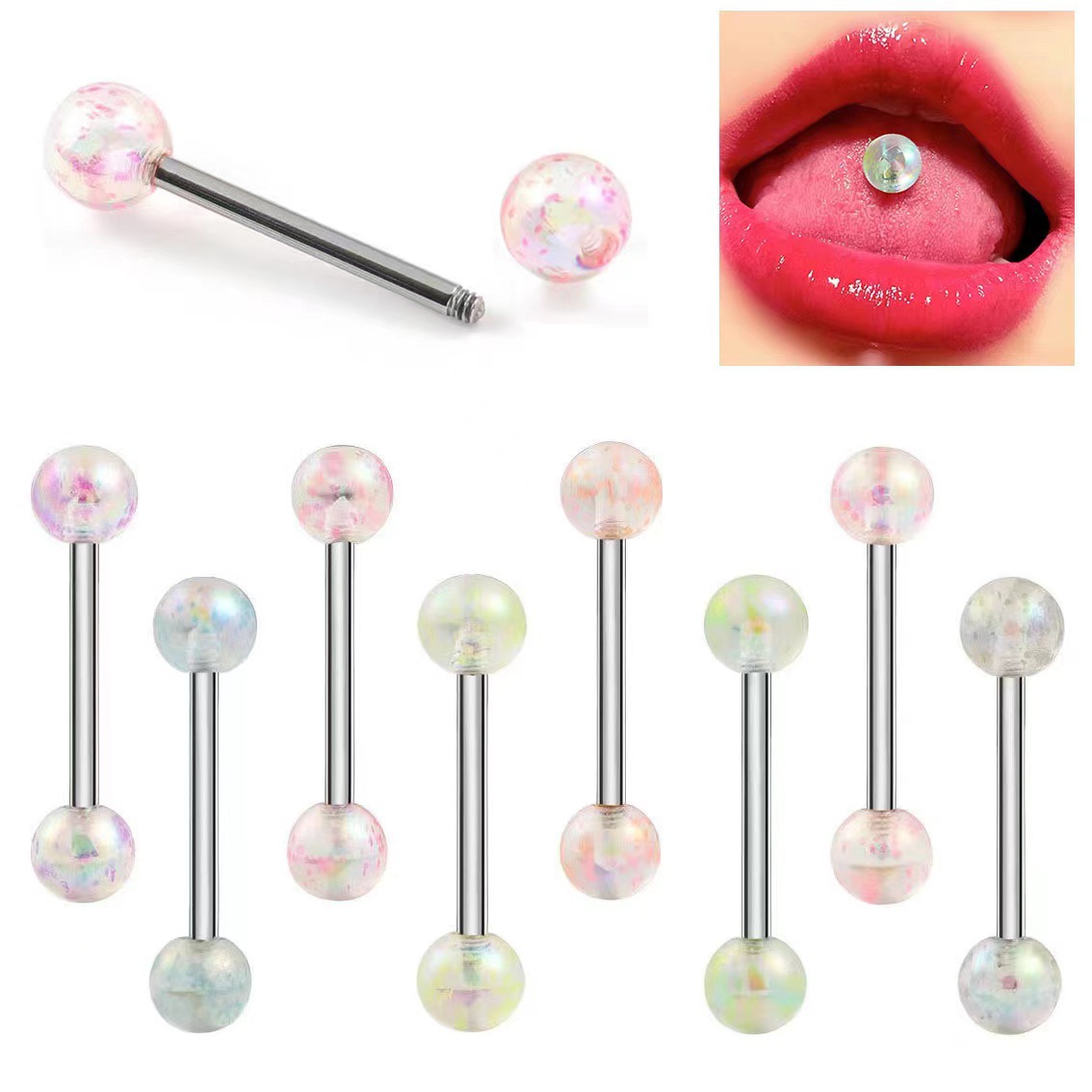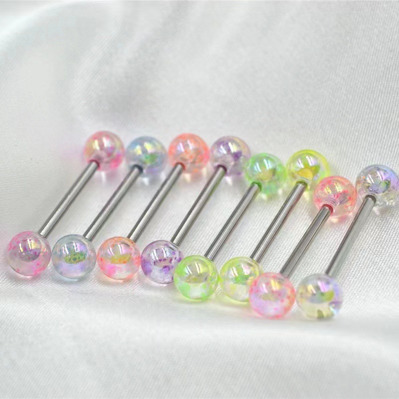 Acrylique anneau de langue, avec Acier inoxydable 304, Rond, 8 pièces & unisexe, couleurs mélangées, Vendu par fixé