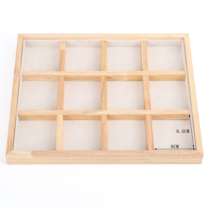 Affichage de bijoux Multi Purpose, bois, avec cuir PU & velours de coton, rectangle, 12 cellules, plus de couleurs à choisir, 300x250x25mm, Vendu par PC