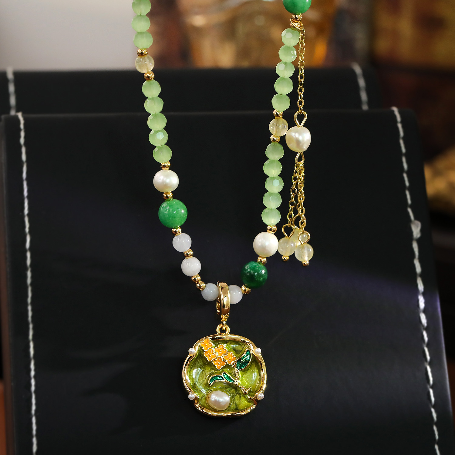Agate Collier de perles d'eau douce, laiton, avec Des billes de verre & Agate & perle d'eau douce cultivée, avec 5.5cm chaînes de rallonge, Plaqué or 18K, bijoux de mode & pour femme & émail, The pendant is 3.2cm long and 2cm wide, Longueur:14 cm, Vendu par PC