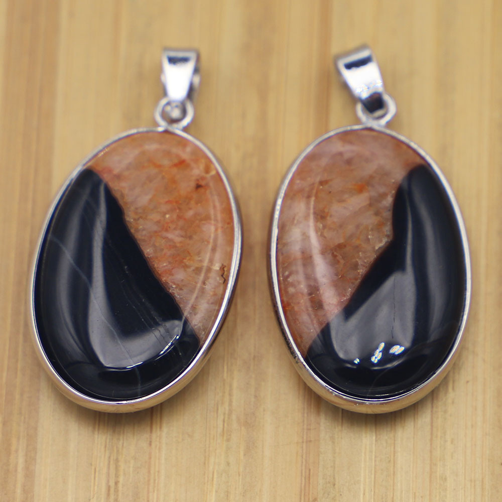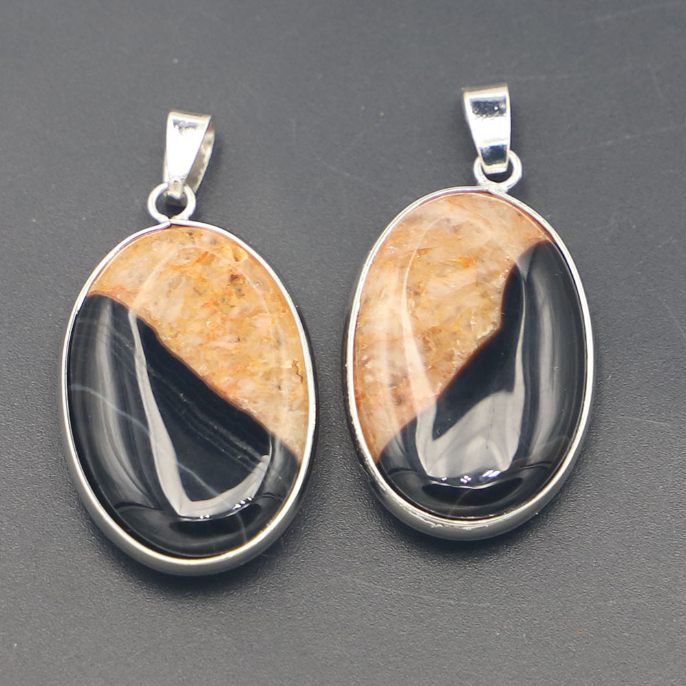 Agate Pendentif, avec laiton, ellipse, DIY, couleurs mélangées, 31x21x7mm, Vendu par PC