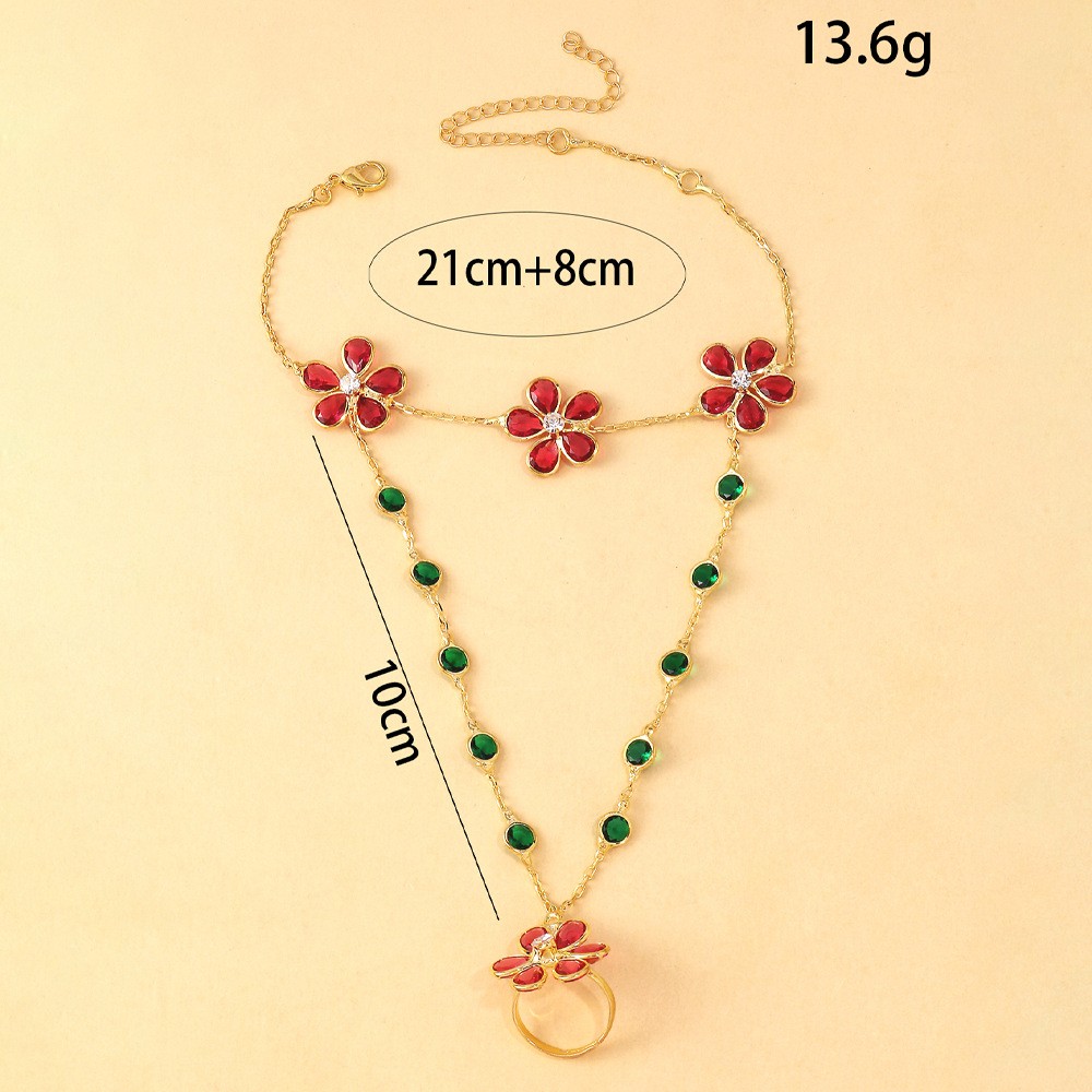 Nuptiale d'anneau de bracelet, lacet, avec coton & cristal & alliage de zinc, avec 1.5Inch chaînes de rallonge, fleur, Placage, réglable & facettes, rouge, protéger l'environnement, sans nickel, plomb et cadmium .5 Environ 6 pouce, Vendu par brin