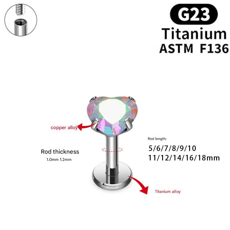 Alliage de titane Goujons perforés pour les lèvres, avec Alliage de cuivre, coeur, unisexe & normes différentes pour le choix & avec zircone cubique, plus de couleurs à choisir, Vendu par PC