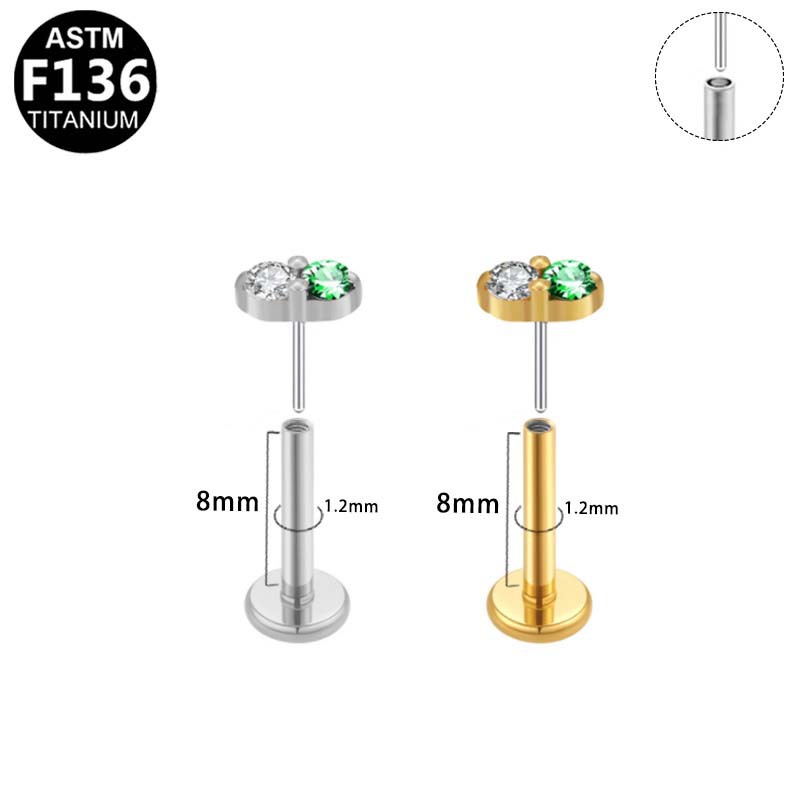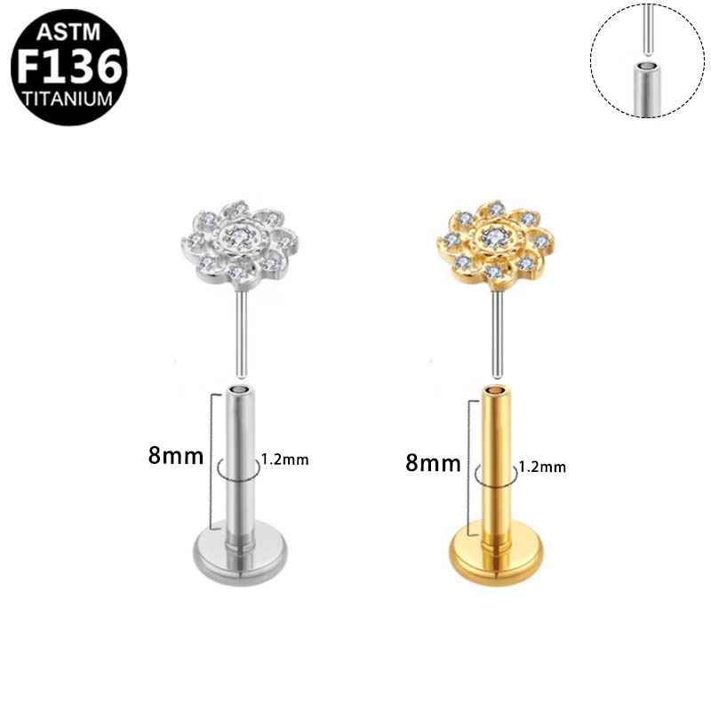 Alliage de titane piercing oreille, avec laiton, Placage, unisexe & styles différents pour le choix & avec strass, 8mm, 10PC/lot, Vendu par lot