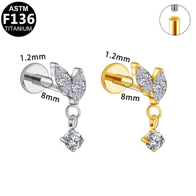 Alliage de titane piercing oreille, Placage, unisexe & styles différents pour le choix & pavé de micro zircon, 8mm, 10PC/lot, Vendu par lot