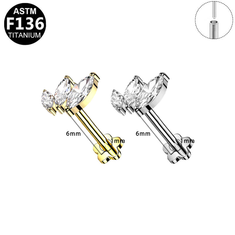 Alliage de titane piercing oreille, Placage, unisexe & styles différents pour le choix & avec strass, 6mm, 10PC/lot, Vendu par lot