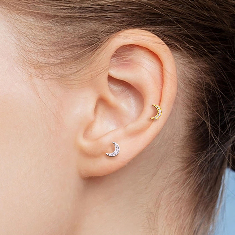 Bijoux de piercing d'oreille en acier inoxydable, Placage, avec zircone cubique, couleurs mélangées Vendu par PC