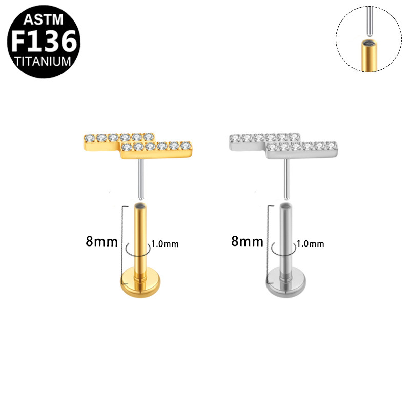 Alliage de titane piercing oreille, avec laiton, Placage, unisexe & styles différents pour le choix & pavé de micro zircon, 10PC/lot, Vendu par lot