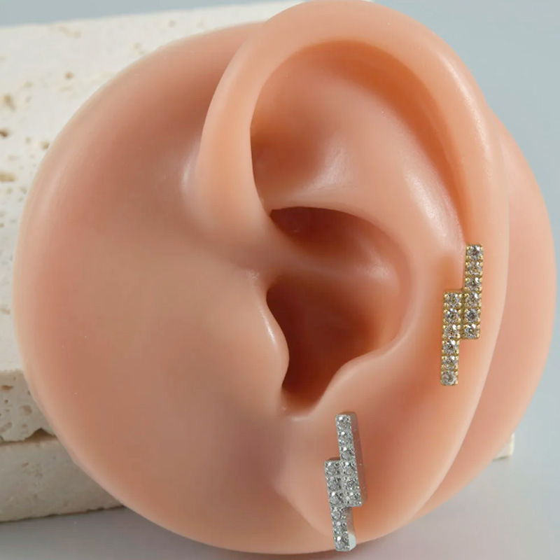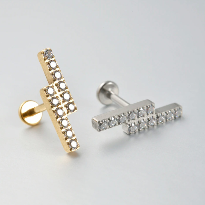 Bijoux de piercing d'oreille en acier inoxydable, Placage, avec zircone cubique, couleurs mélangées Vendu par PC
