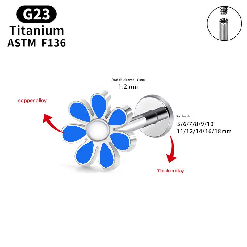 Alliage de titane piercing oreille, avec Alliage de cuivre, margueritepâquerette, unisexe & normes différentes pour le choix & émail, plus de couleurs à choisir, Vendu par PC