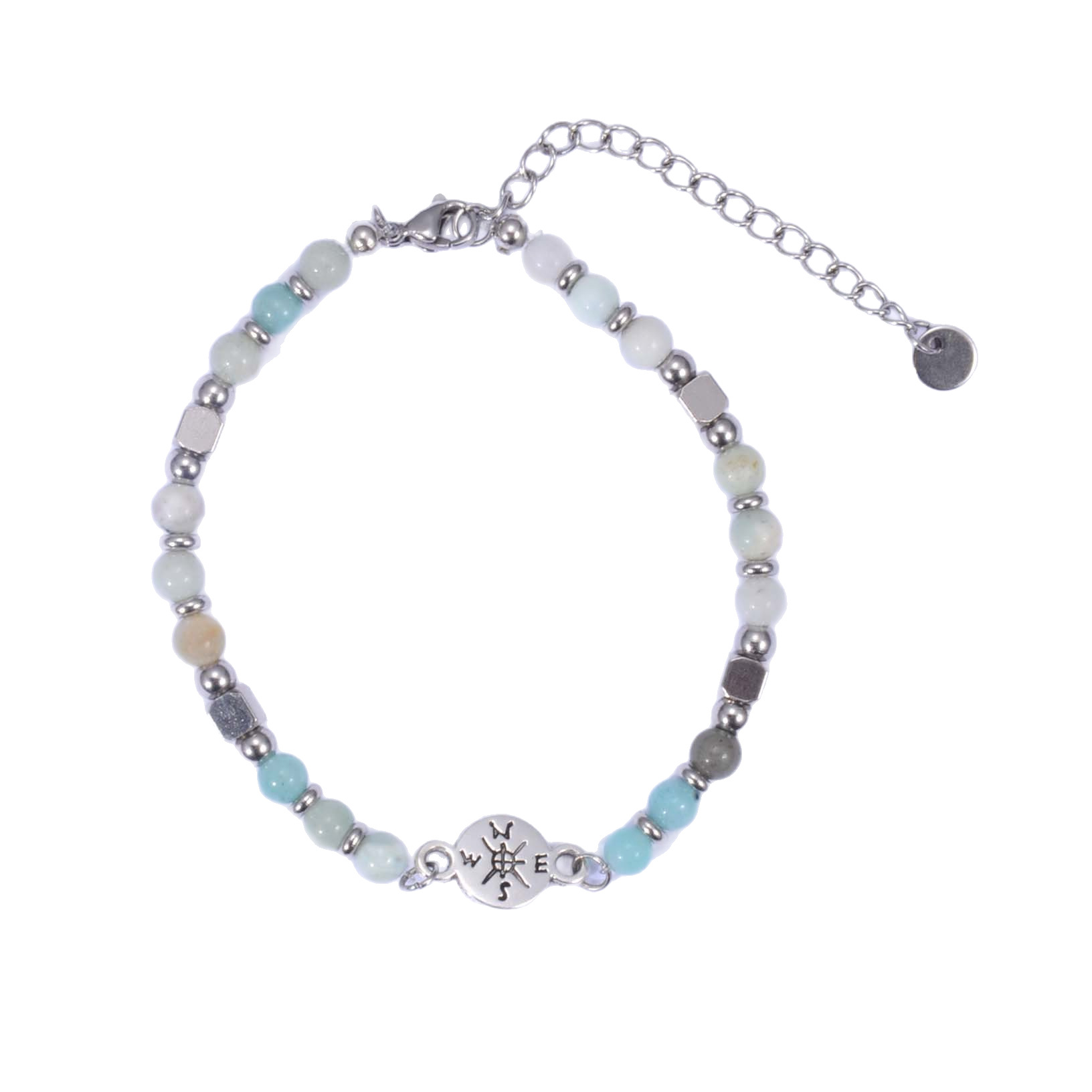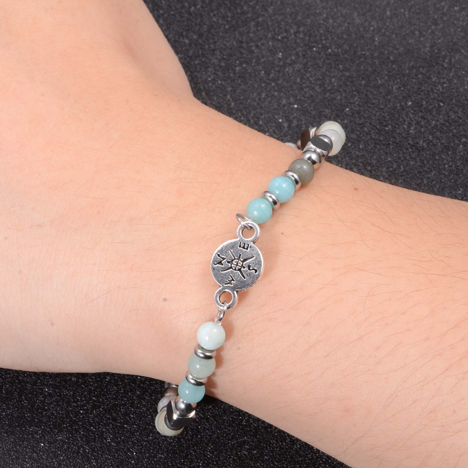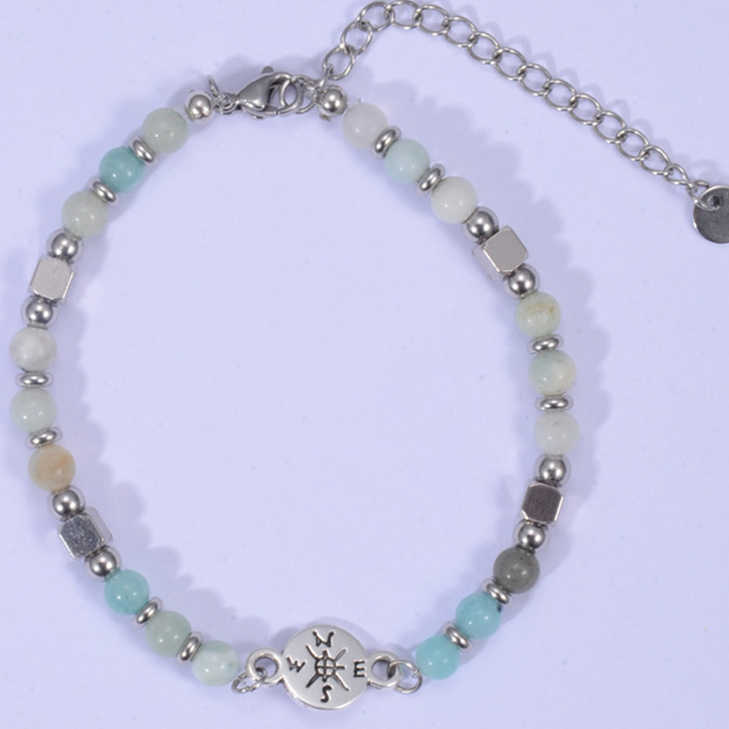 Amazonite bracelet, avec Acier inoxydable 304, Boussole, fait à la main, bijoux de mode & unisexe, Longueur:Environ 7 pouce, Vendu par PC