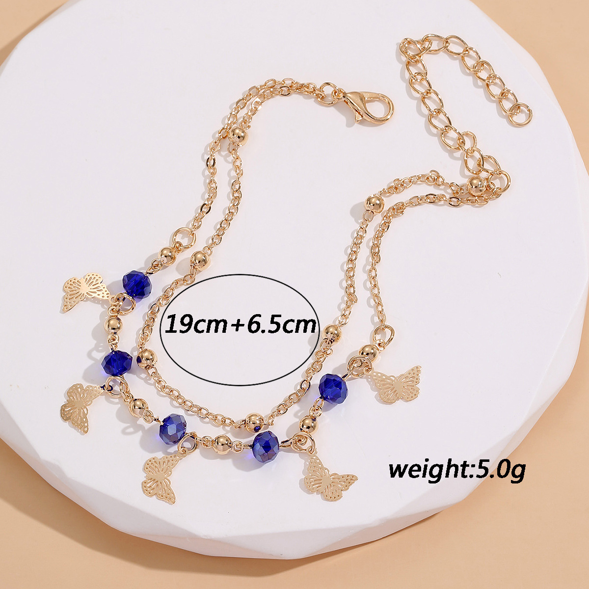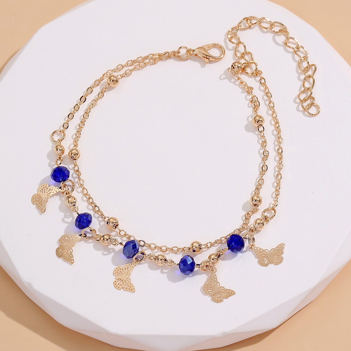 Anklet en alliage de zinc, papillon, Placage, bijoux de mode, bleu, Vendu par PC