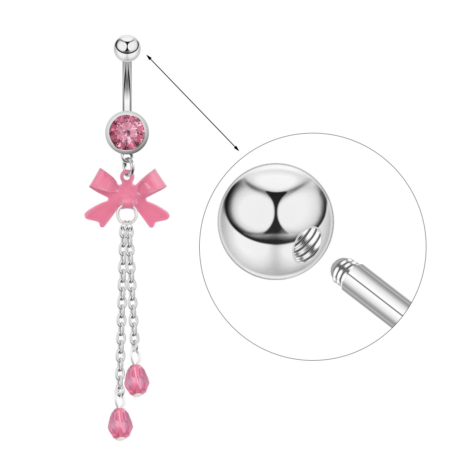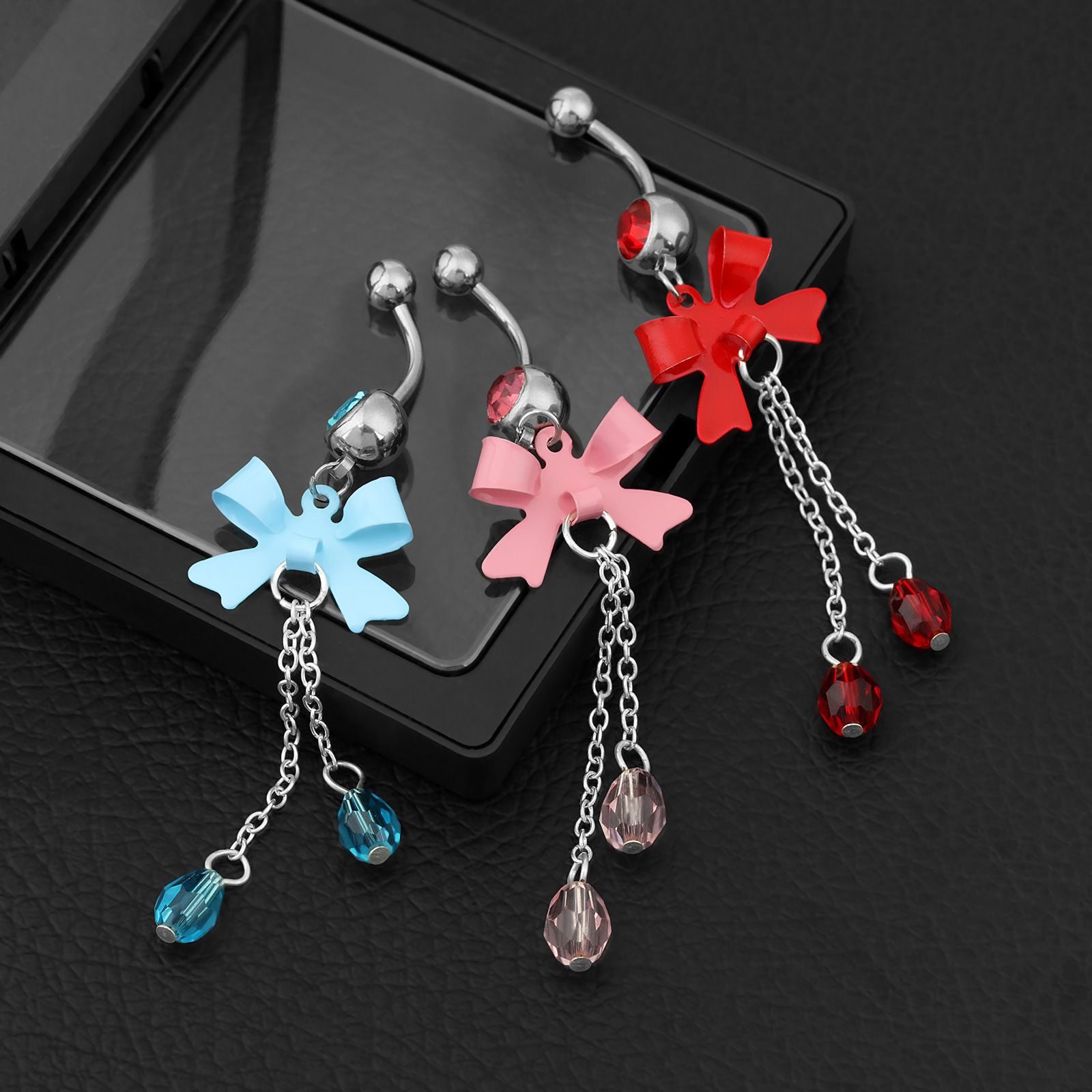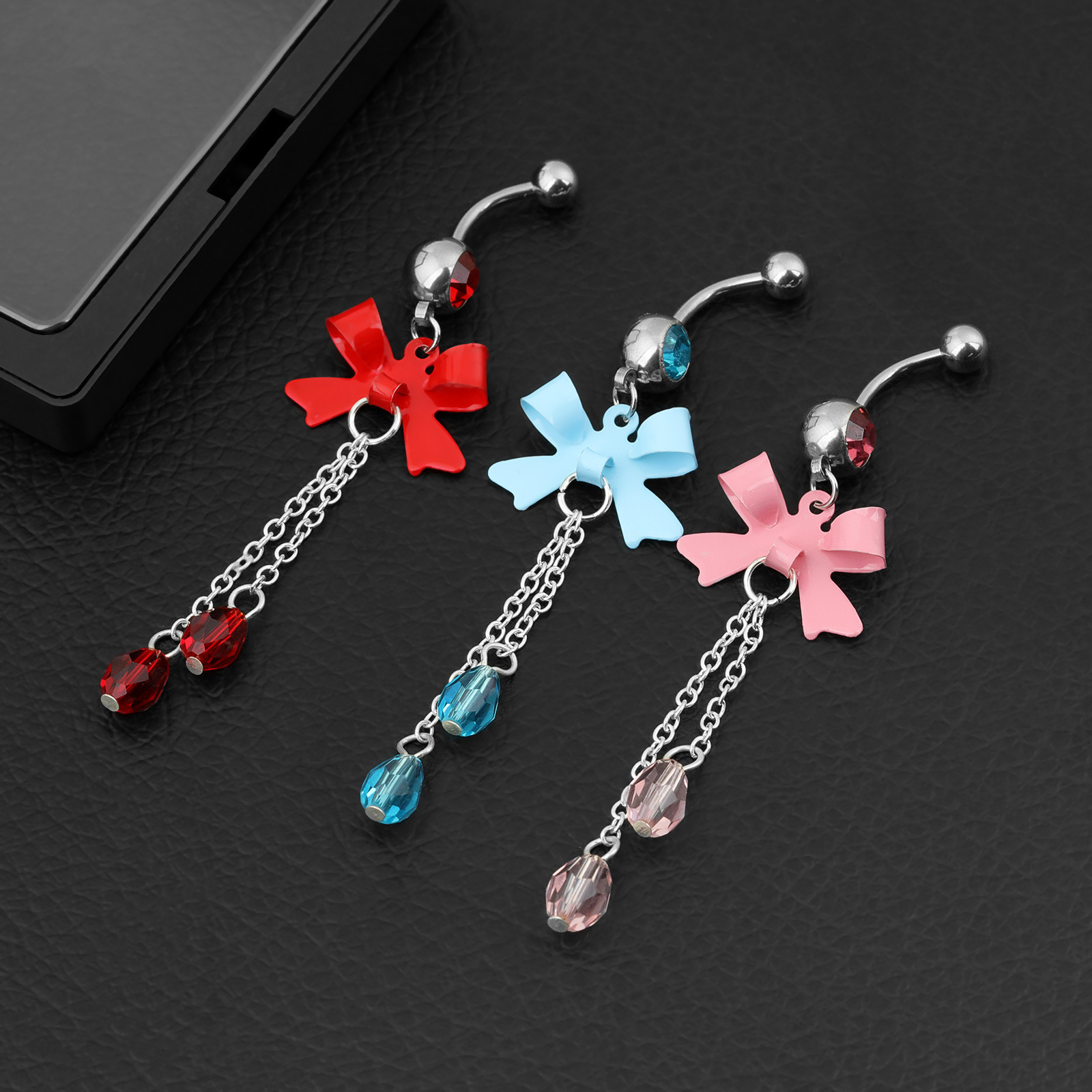 Anneau de ventre en acier inoxydable, Noeud papillon, peinture, styles différents pour le choix & émail & avec strass, couleur originale Vendu par PC